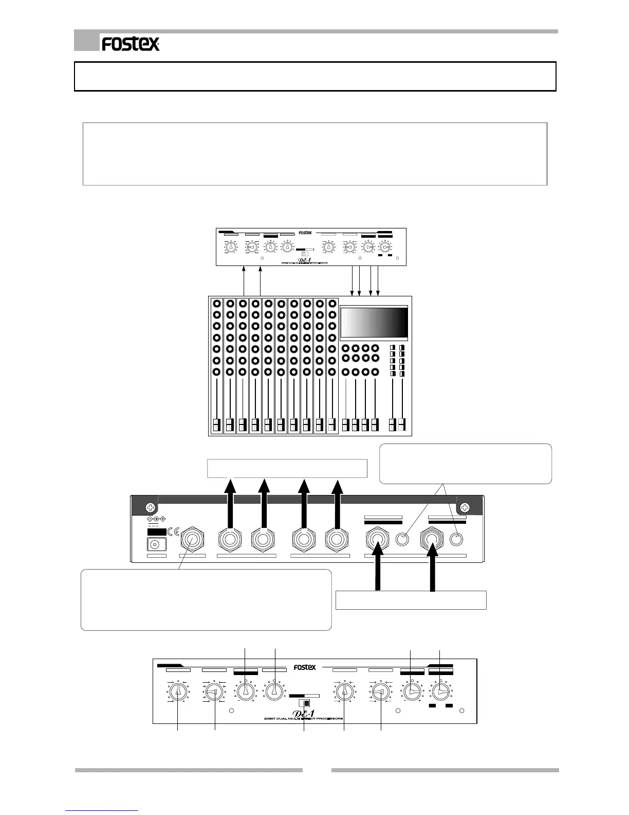 As an example of using the "DUAL MODE", connect the DE-1 between the AUX SEND and RETURN terminals of an