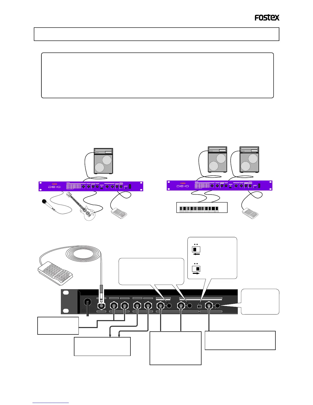 and microphone are directly connected to the DE-10, while the effect outputs of the DE-10 are connected to a