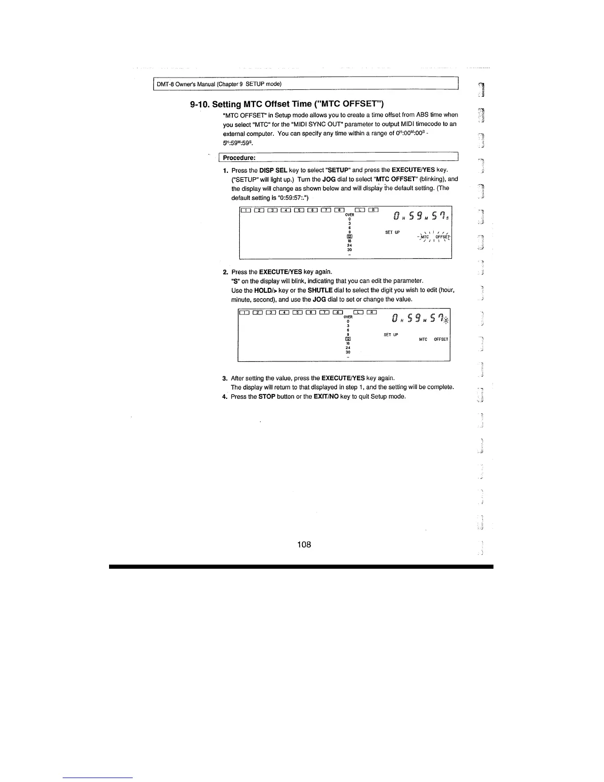 Fostex DMT-8 - Setting the MTC Offset Time (MTC OFFSET)