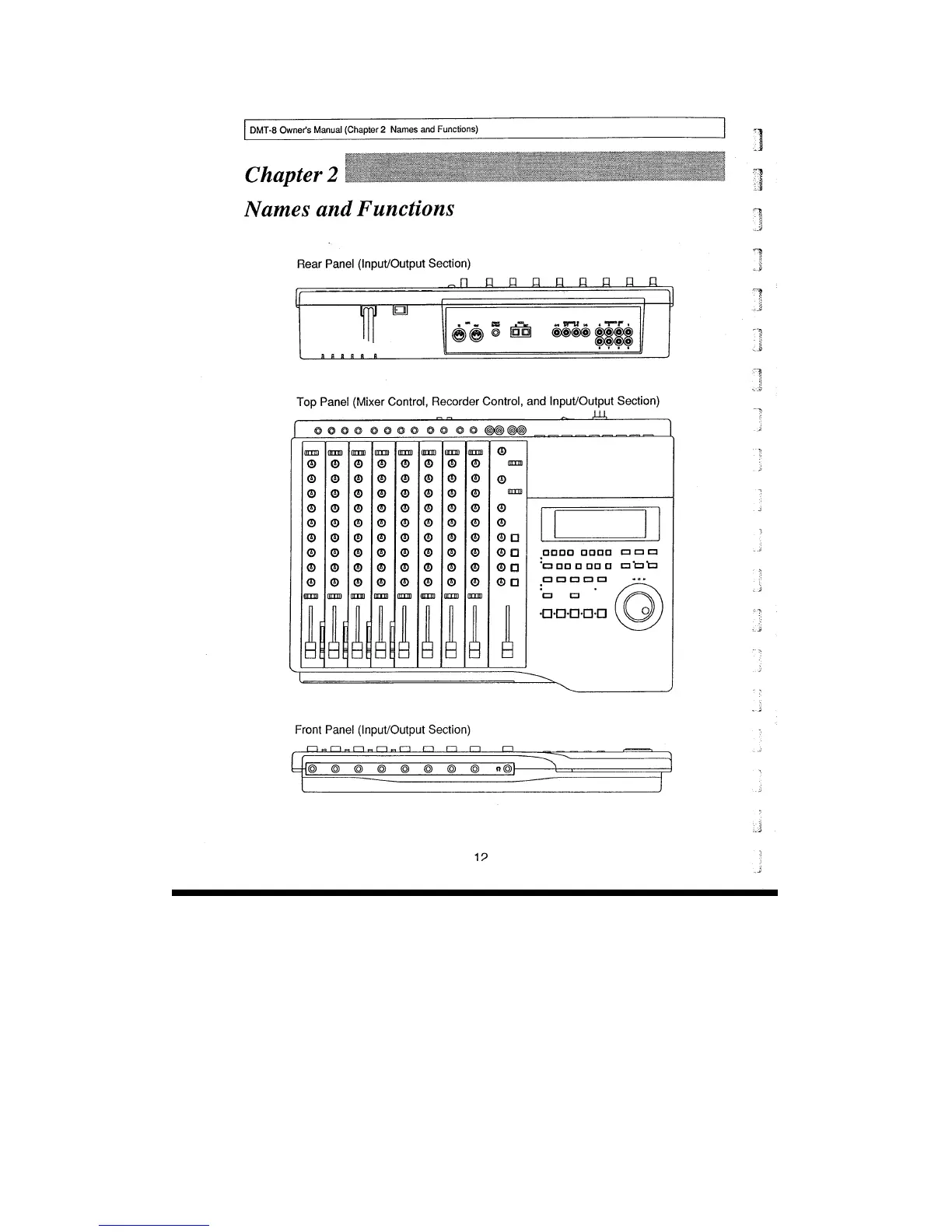 Fostex DMT-8 - Names and Functions; Rear;Top;Front Panel Overview
