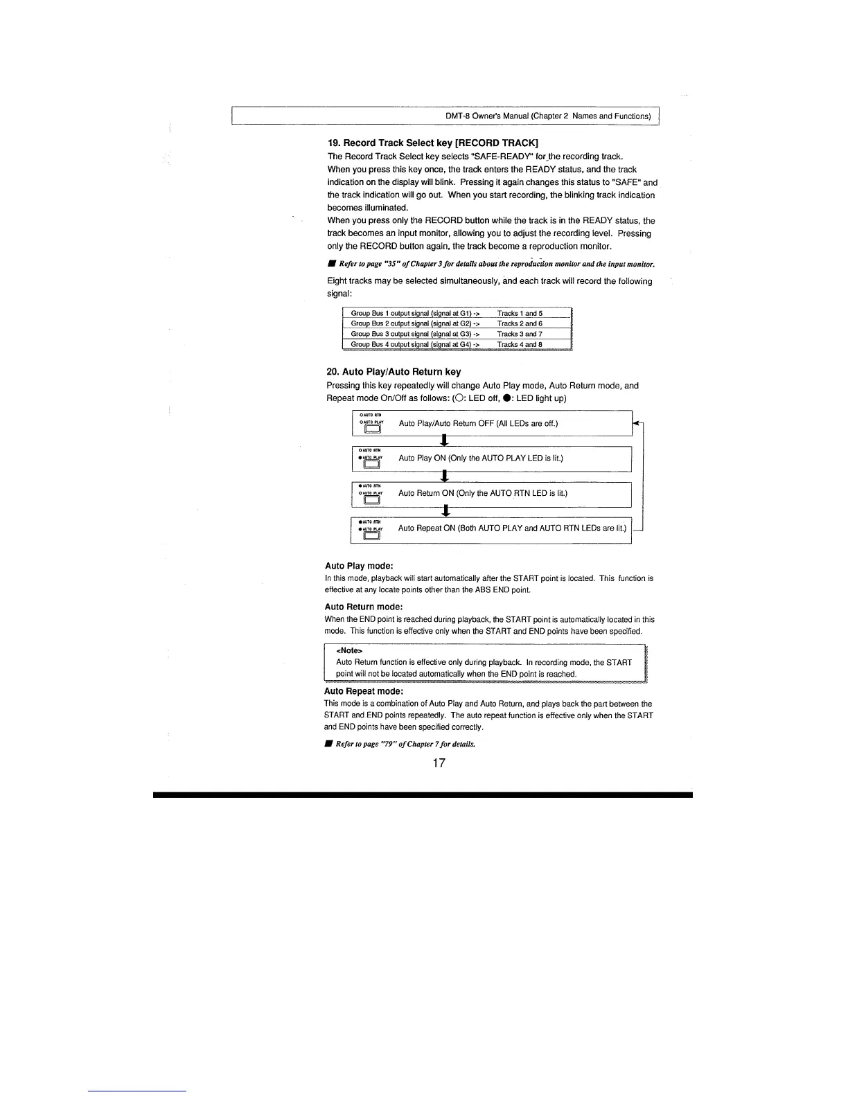 Fostex DMT-8 - Record Track Select Key; Auto Play;Auto Return Key