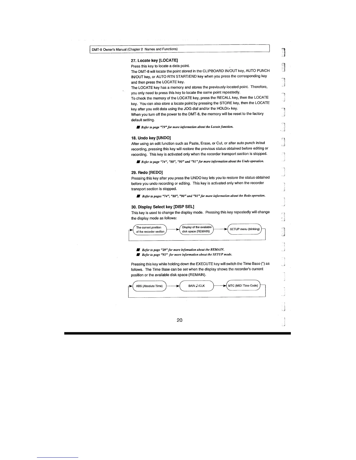 Fostex DMT-8 - Locate Key; Undo Key; Redo; Display Select Key