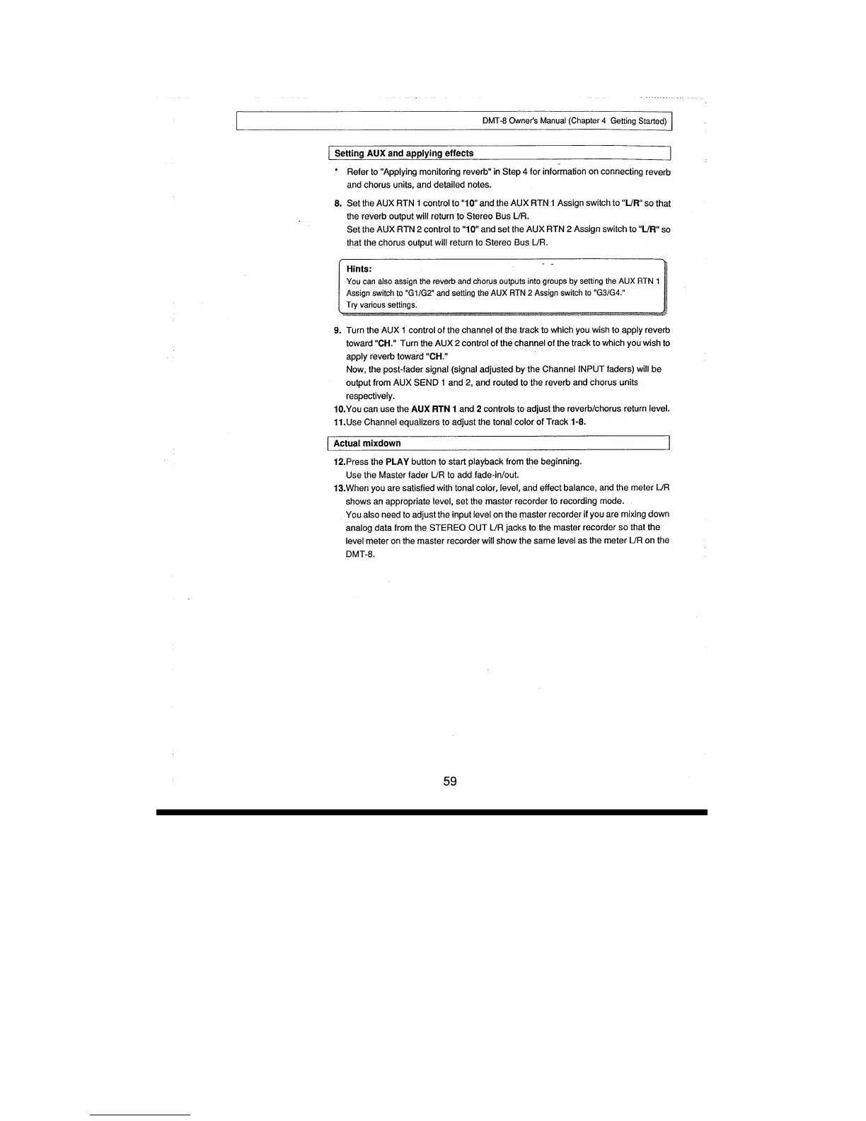 Fostex DMT-8 - Setting AUX and Applying Effects; Actual Mixdown