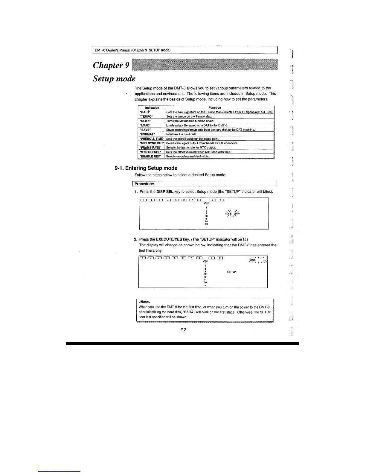 Fostex DMT-8 - Setup Mode; Entering Setup Mode