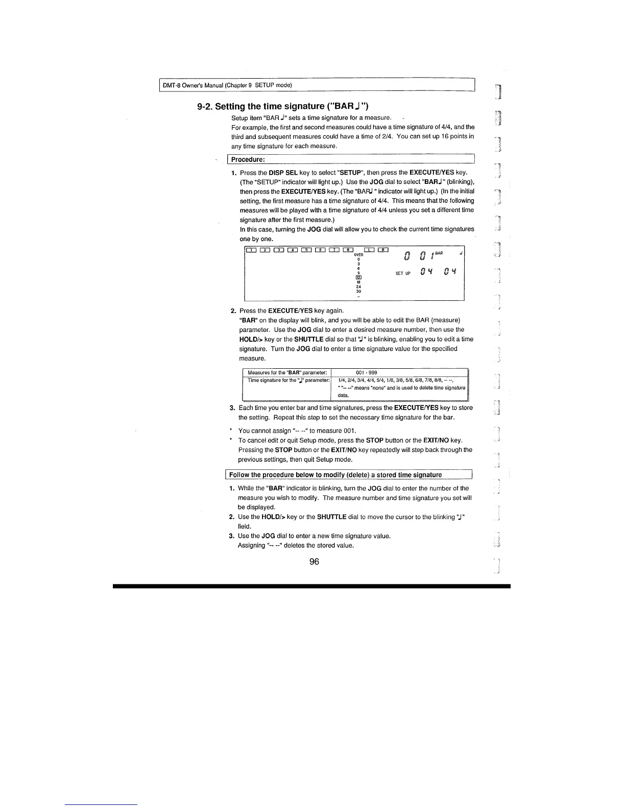 Fostex DMT-8 - Setting the Time Signature (BAR)