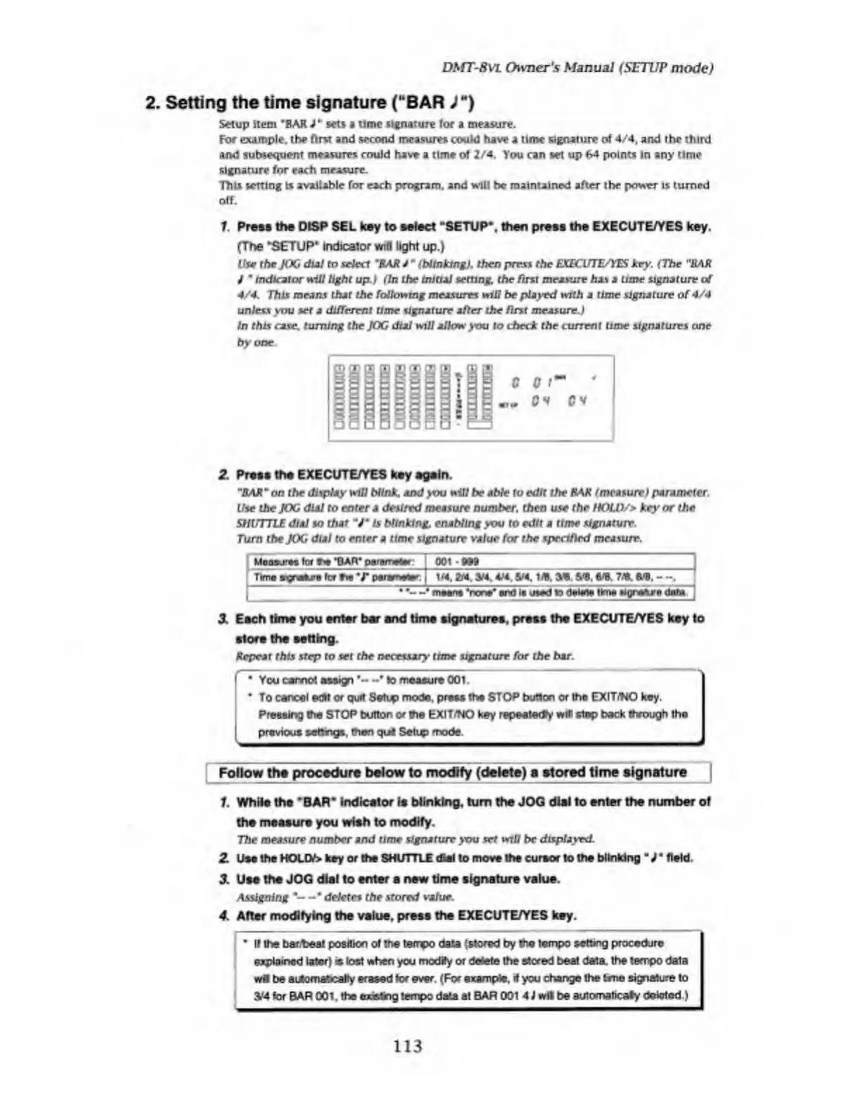 Fostex DMT-8VL - Setting the Time Signature (BAR;)