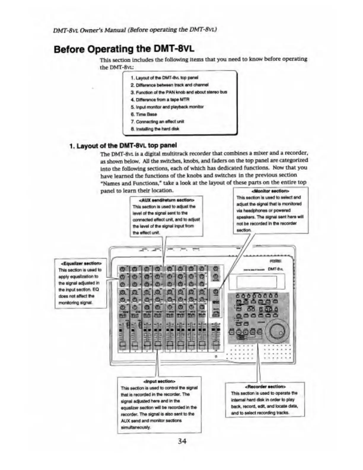 Fostex DMT-8VL - Before Operating the DMT-8 VL