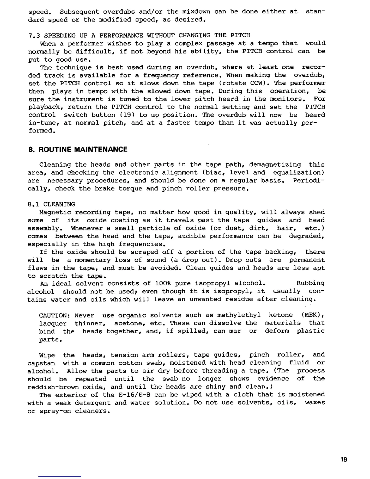 Fostex E-16 - Speeding Up Performance Without Pitch Change; Routine Maintenance; Cleaning Heads and Machine Parts