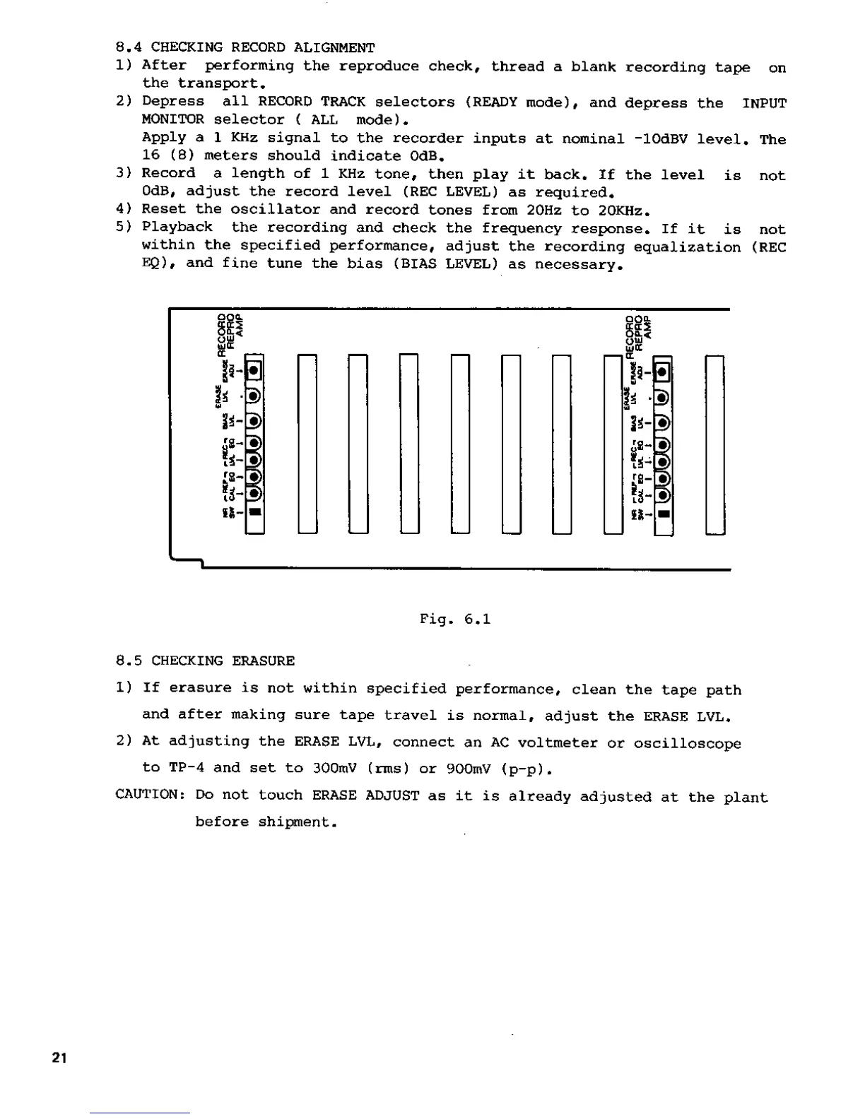 Fostex E-16 - Checking and Adjusting Record Alignment; Checking Tape Erasure Performance