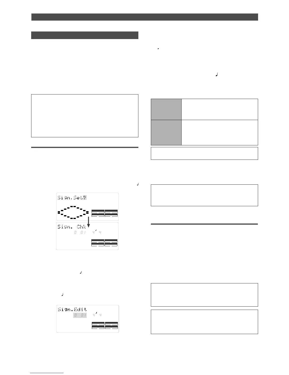 • Initial setting: 4/4 for bar 001 (not specified for 002 and later.)