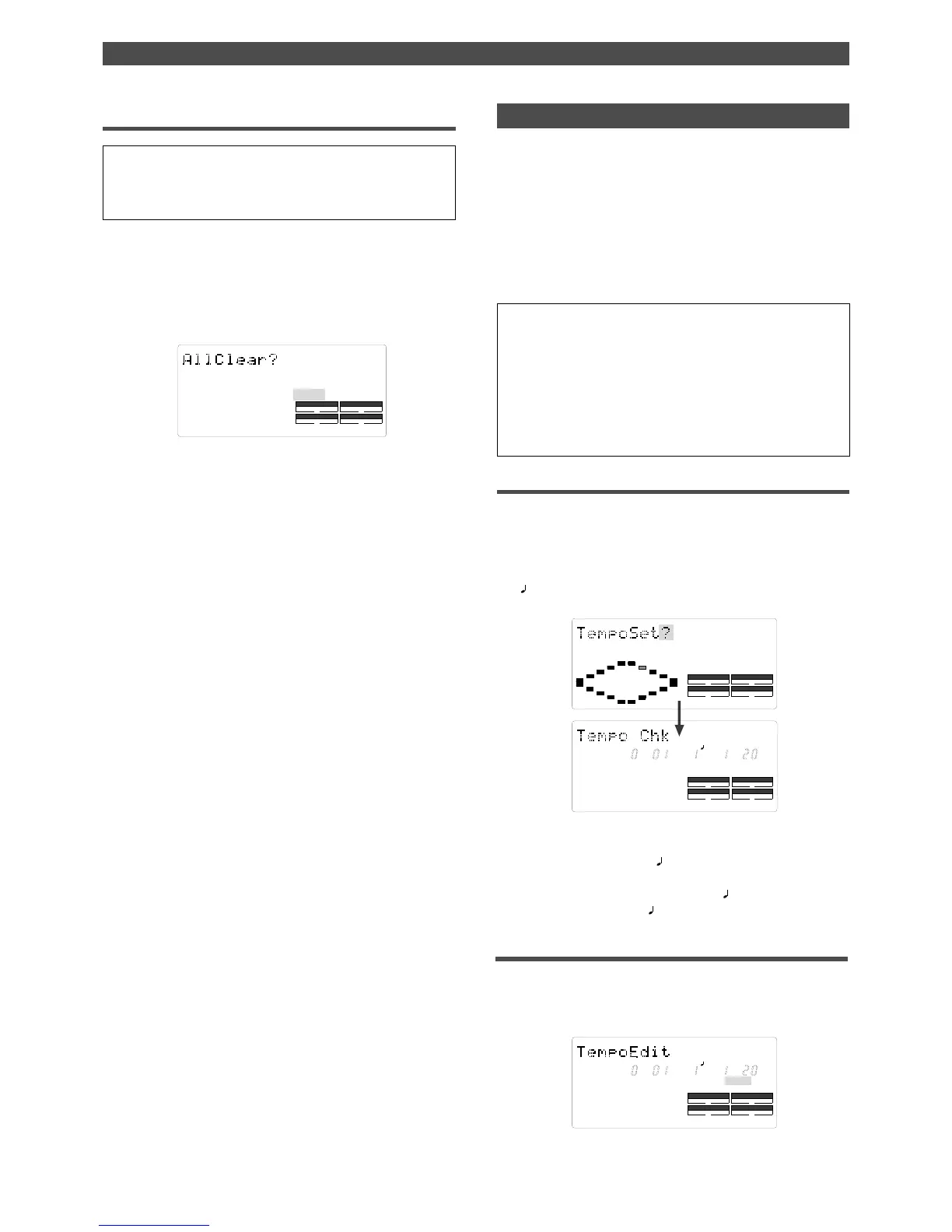 • Setting range of tempo: 30–250/quarter note, --- (delete)