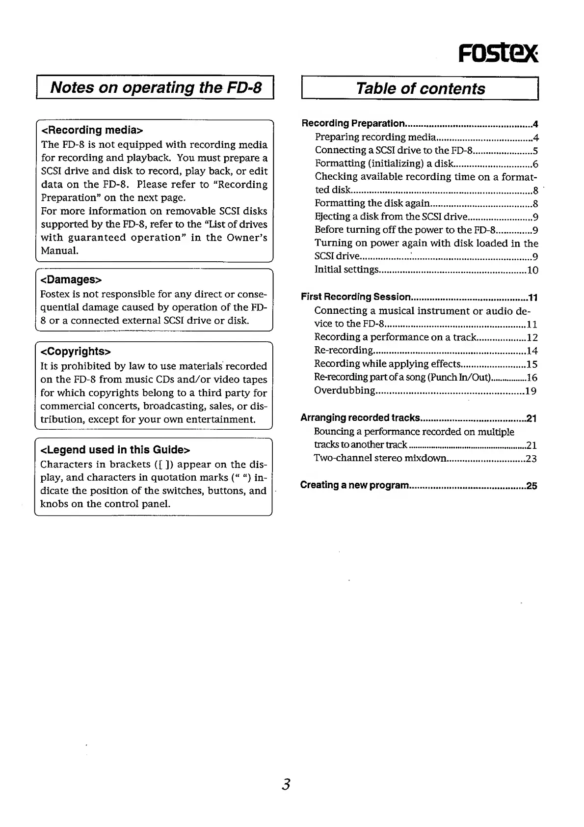 Fostex FD-8 - Table of Contents