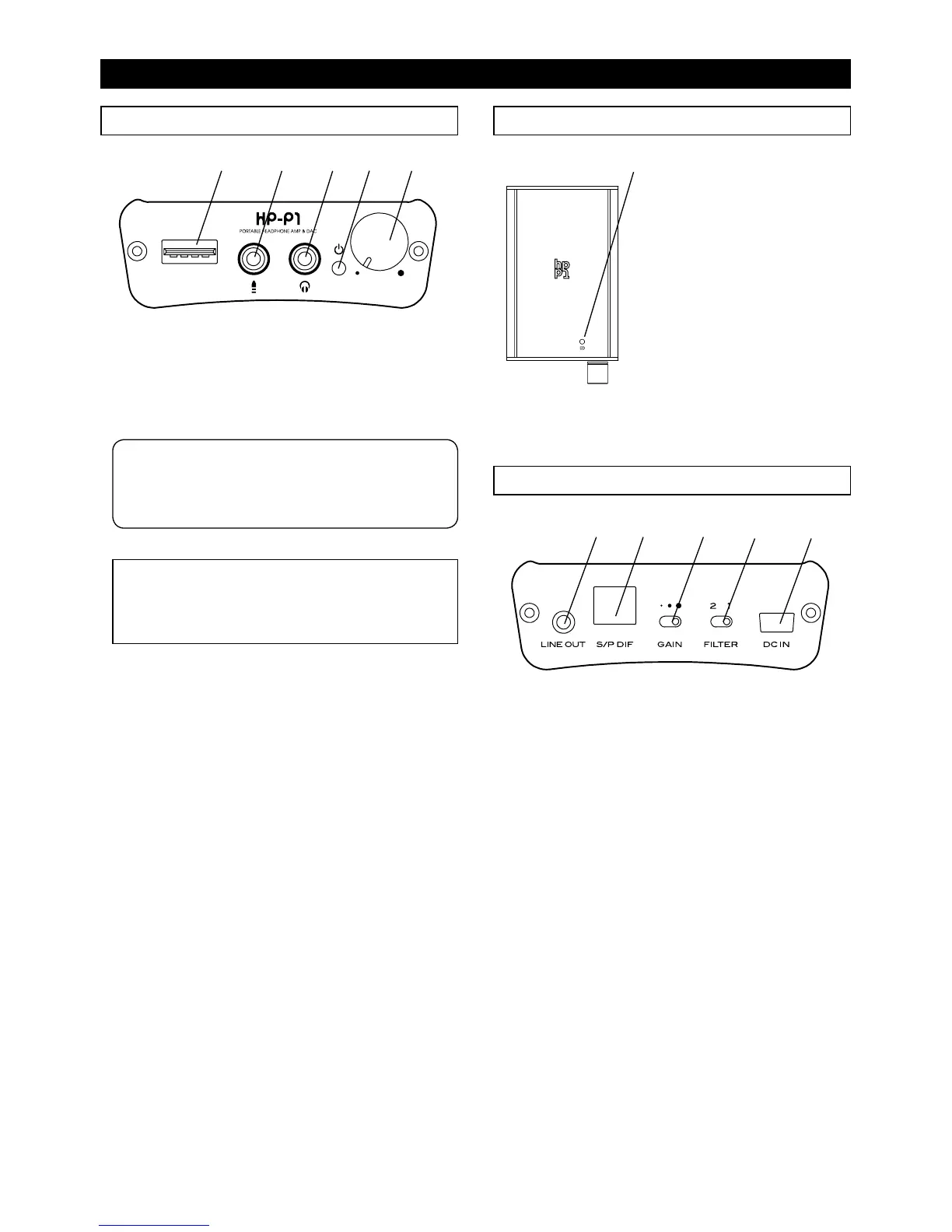Switches the gain of the headphone amplier. See