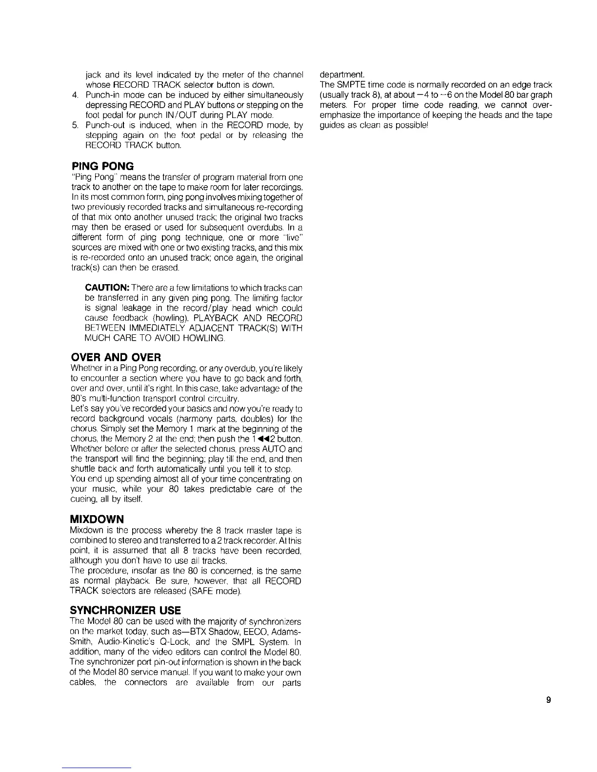 Fostex M80 - Ping Pong; Over and over; Mixdown; Synchronizer Use