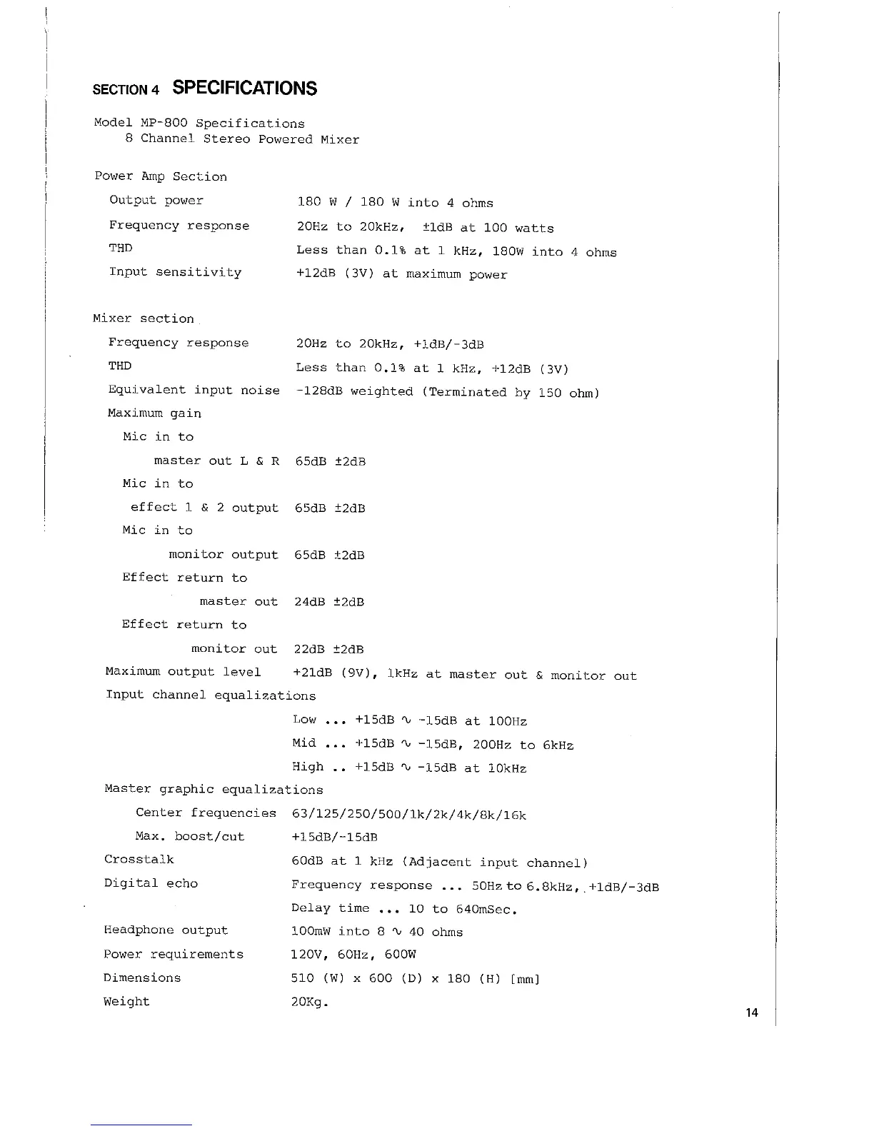 Fostex MP-1200 - SECTION 4 SPECIFICATIONS