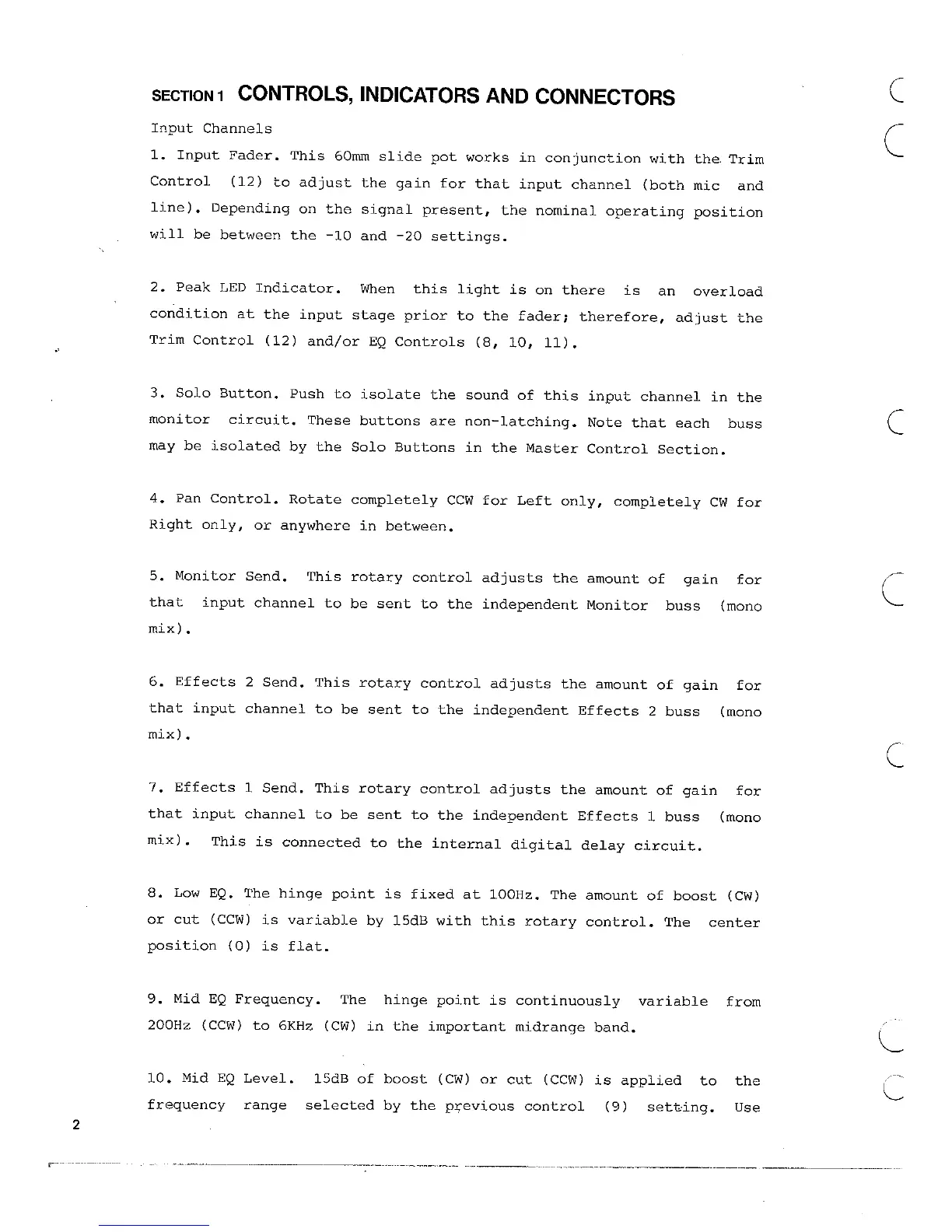 Fostex MP-1200 - SECTION 1 CONTROLS, INDICATORS AND CONNECTORS; Input Channel Controls
