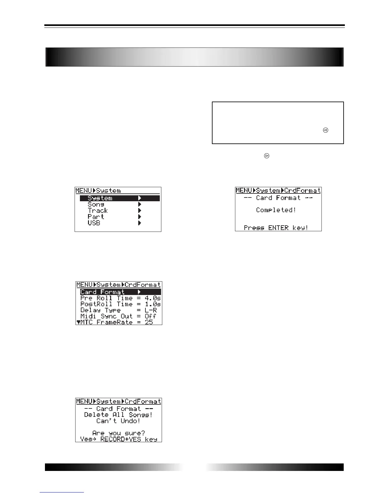 By formatting a card, all recorded data on the card are erased and the card returns to the