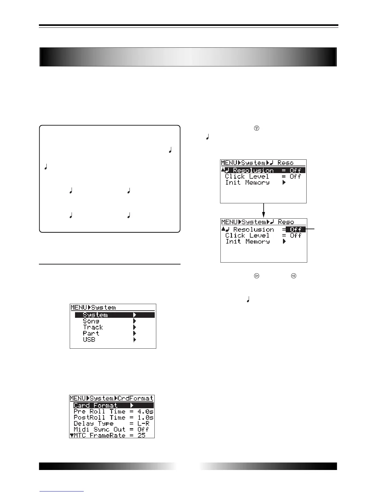When "Beat resolution" is set to "On", the clock digit of the Bar/Beat/Clock value is automati-