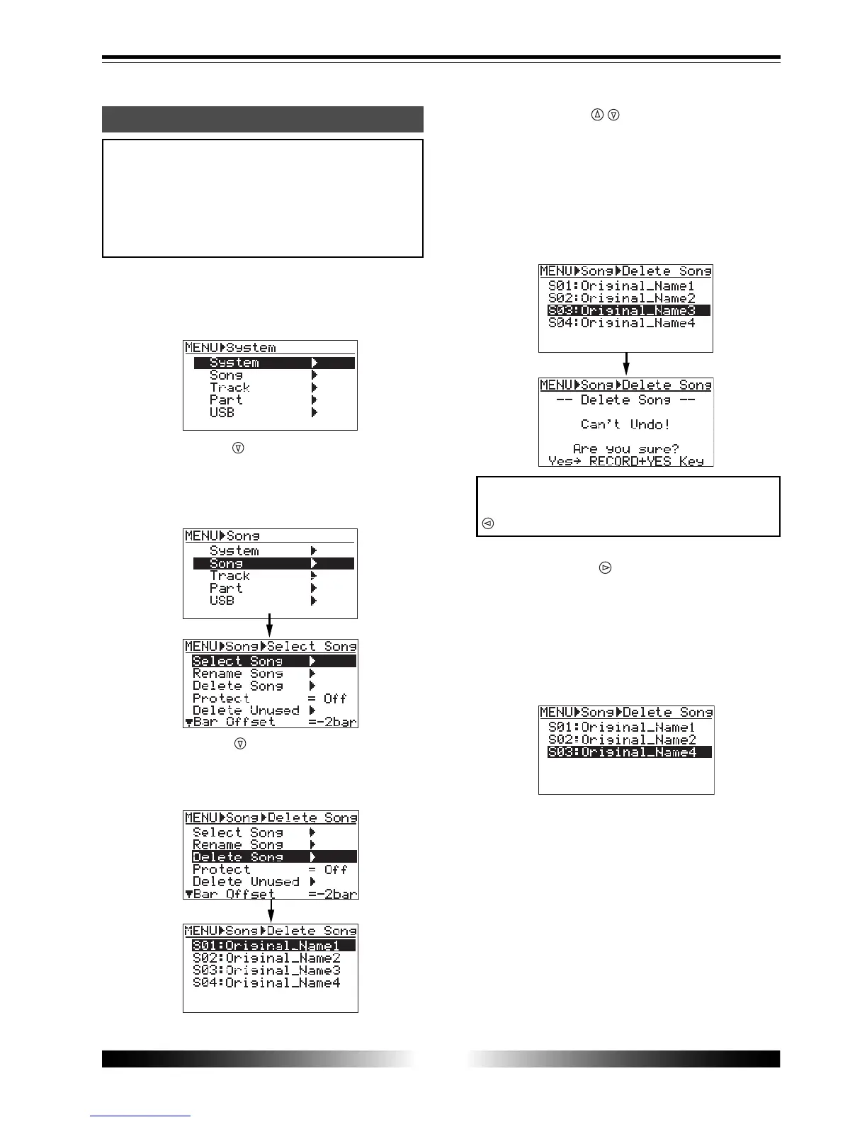 To cancel deleting the song, press the [CURSOR