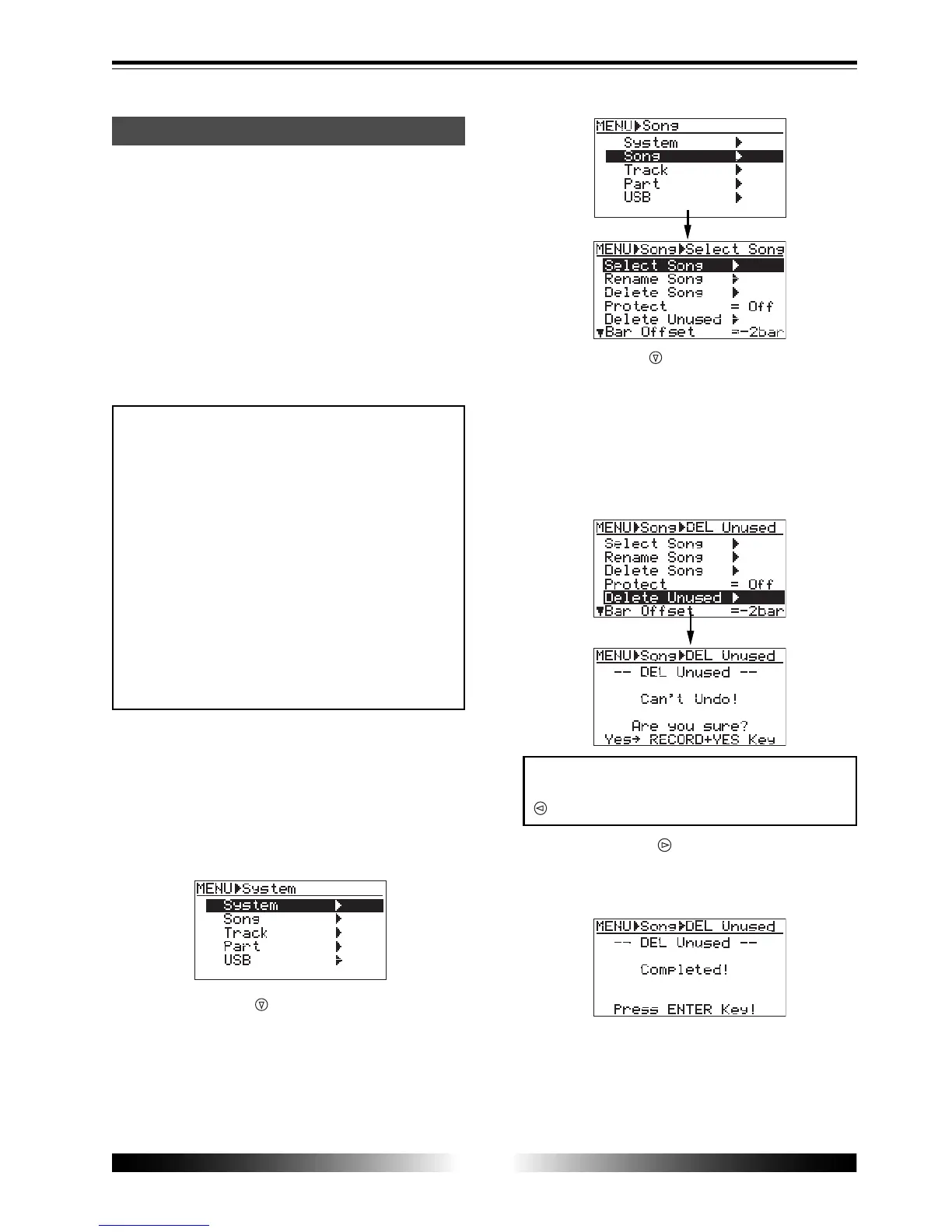 In this screen, “DEL Unused” and “Can’t Undo!” are