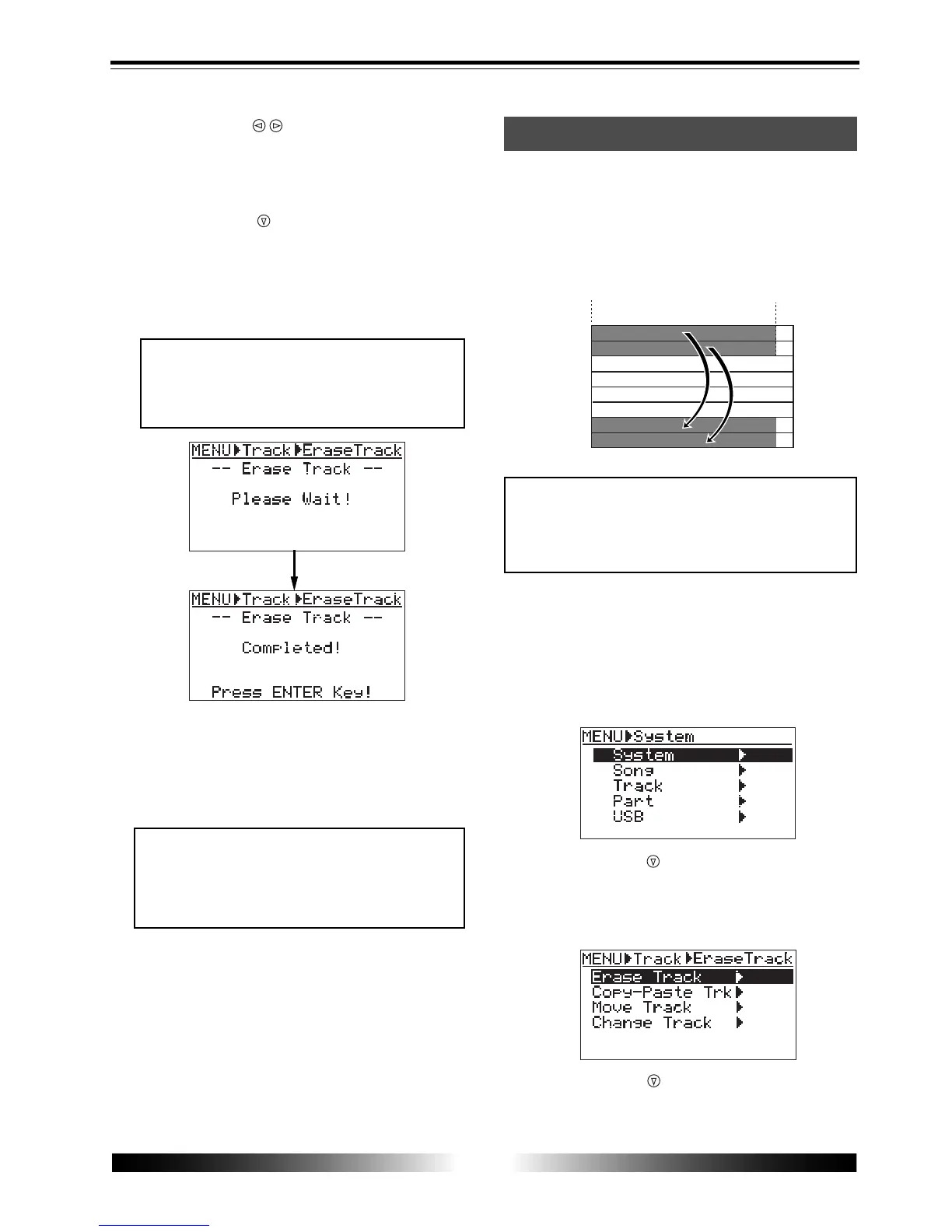 tion screen, in which "Erase Track" is highlighted ini-