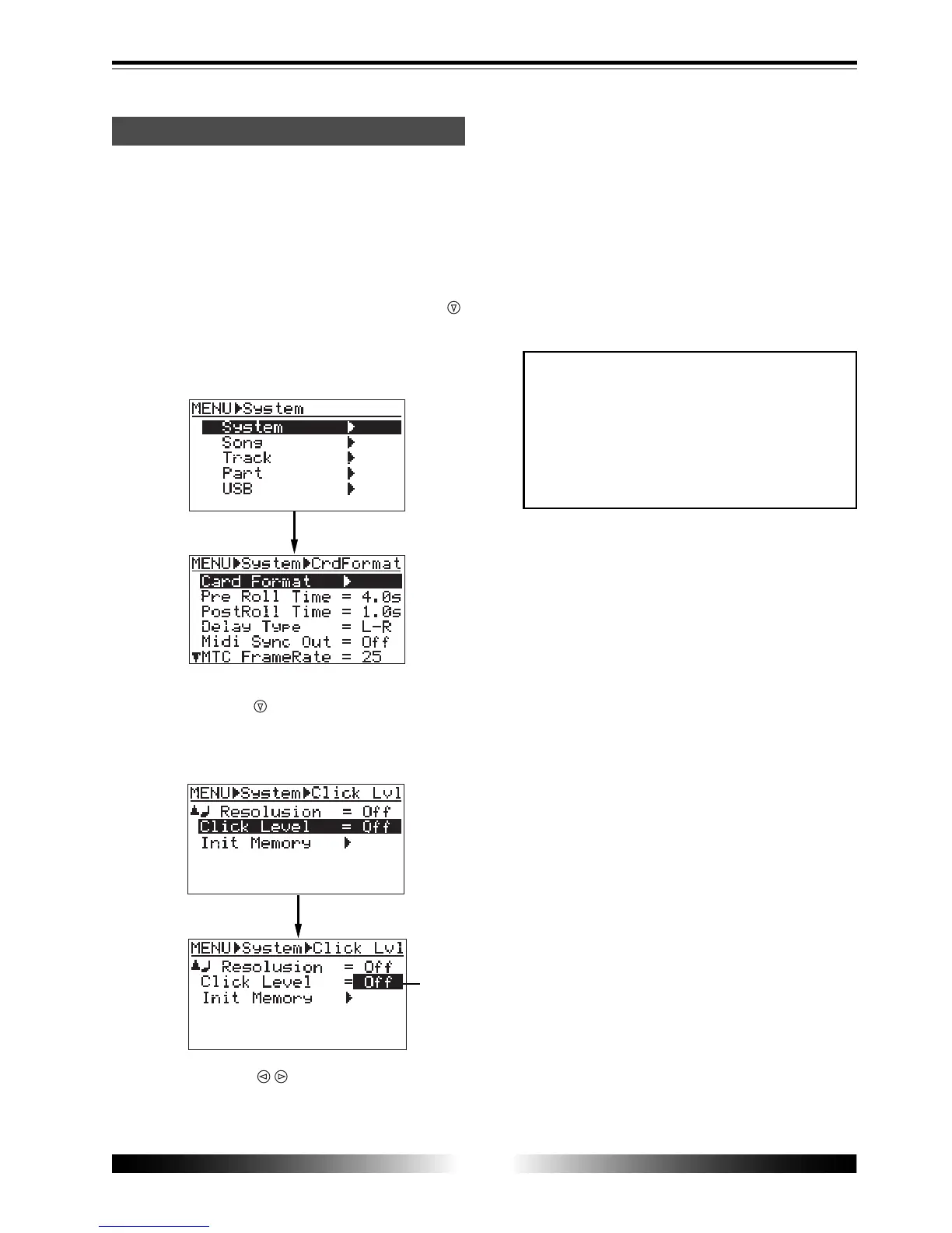 2) Use the [CURSOR ] key to highlight "Click Level",