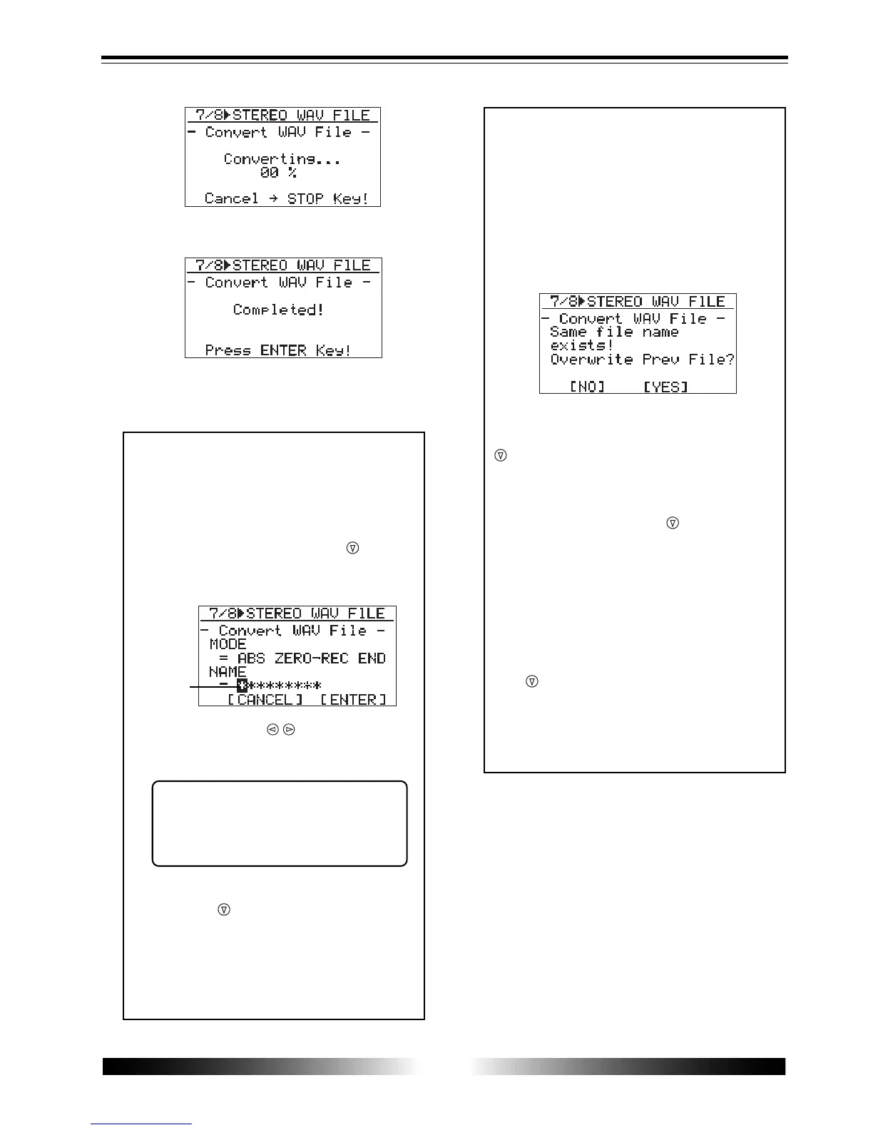 press the [7-8>STEREO WAV FILE] key to