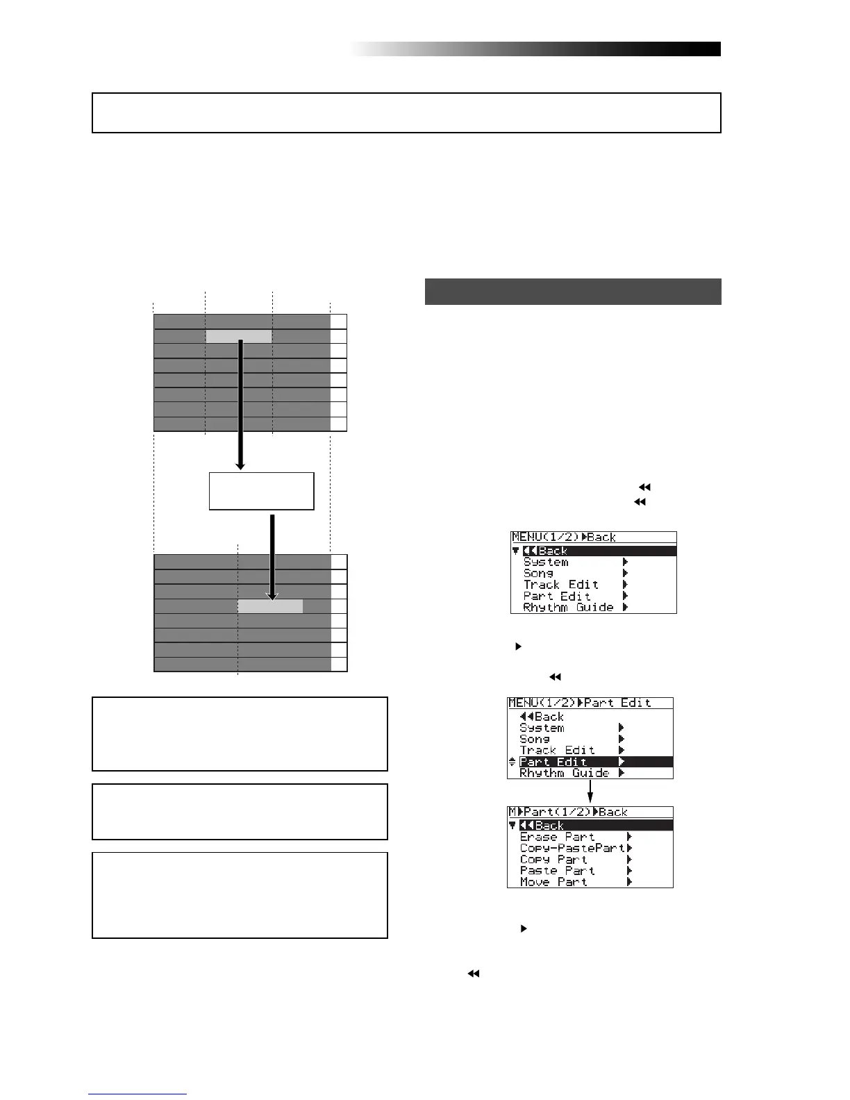 The copy/paste operation of a part or parts can be made only within the current song.