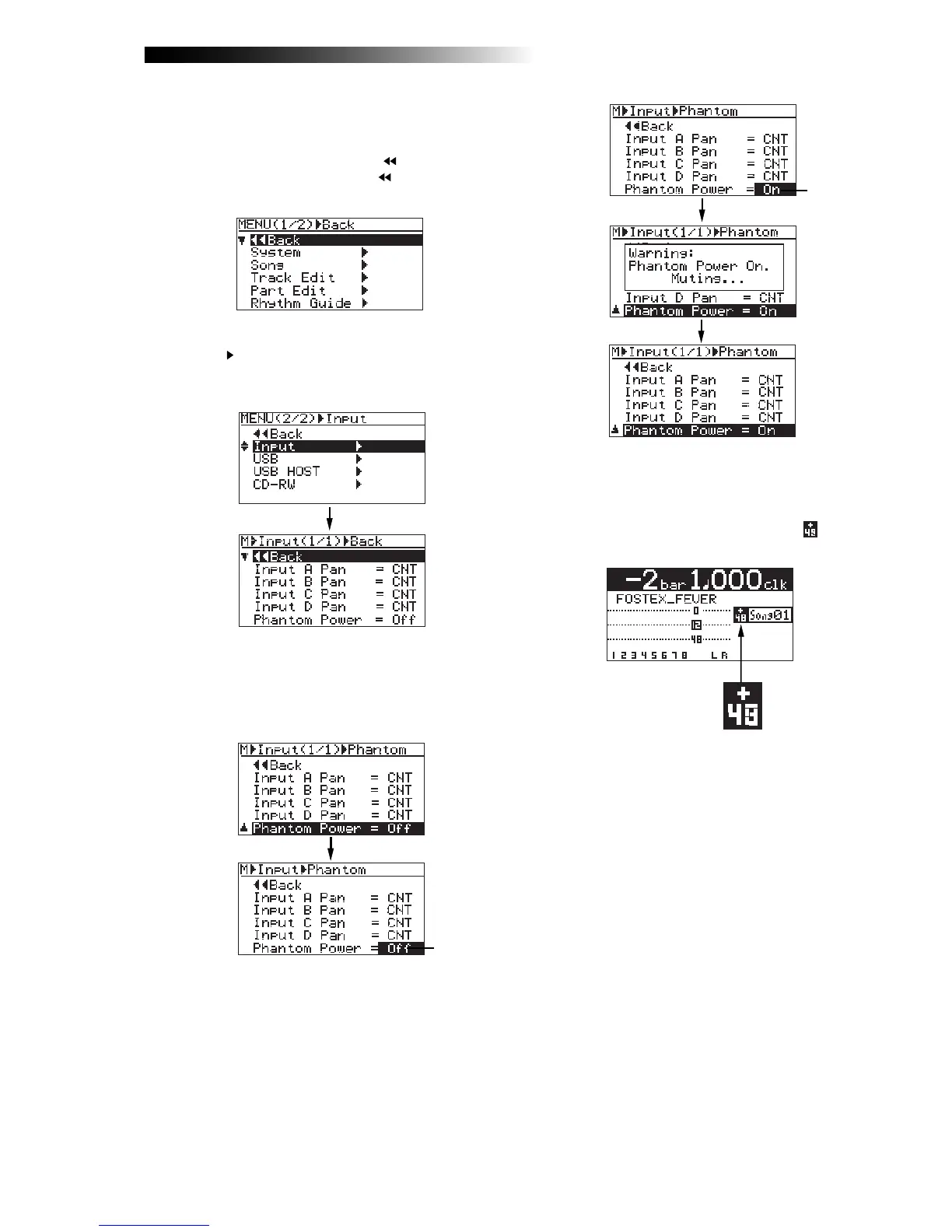 "Phantom Power=***", and press the