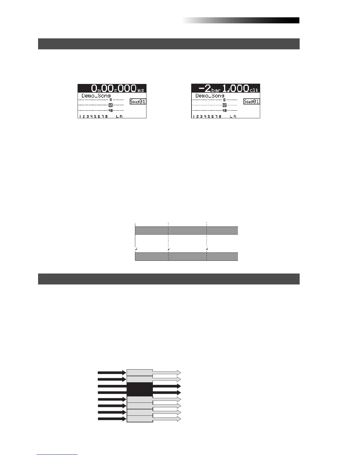 and bar/beat mode. Each screen example below shows the recorder is located at the beginning of
