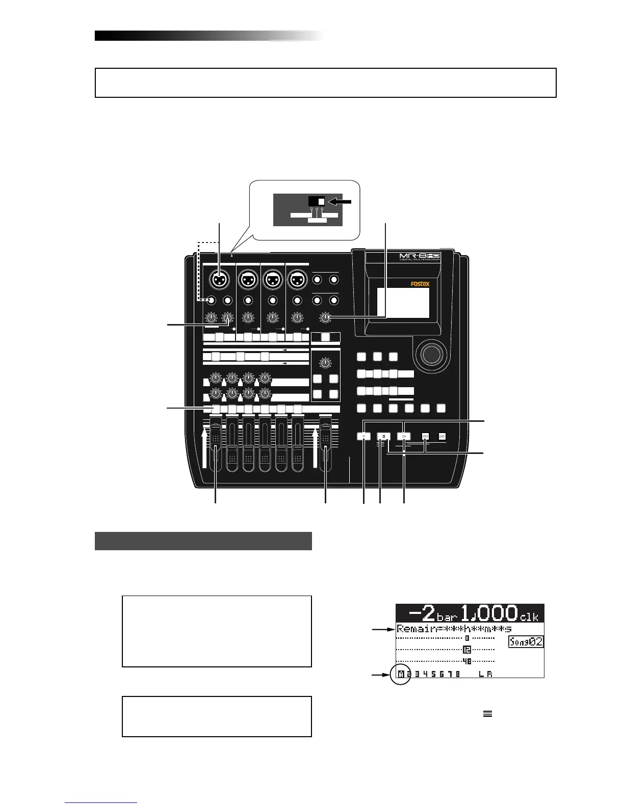 The following describes the procedure for recording an acoustic guitar onto track 1 via a micro-