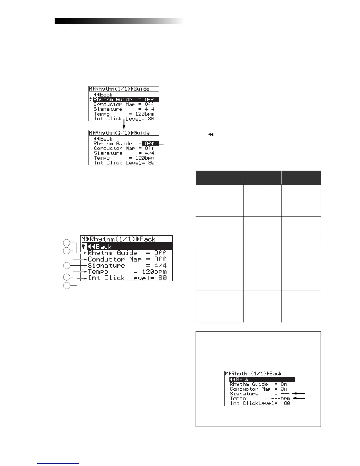 1. Rhythm Guide: On/off selection of the rhythm guide