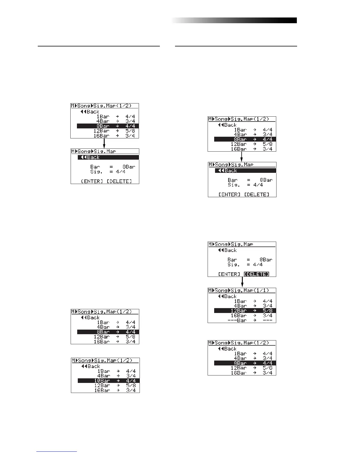 [MENU/ENTER] knob to select "Sig. = 4/4", and