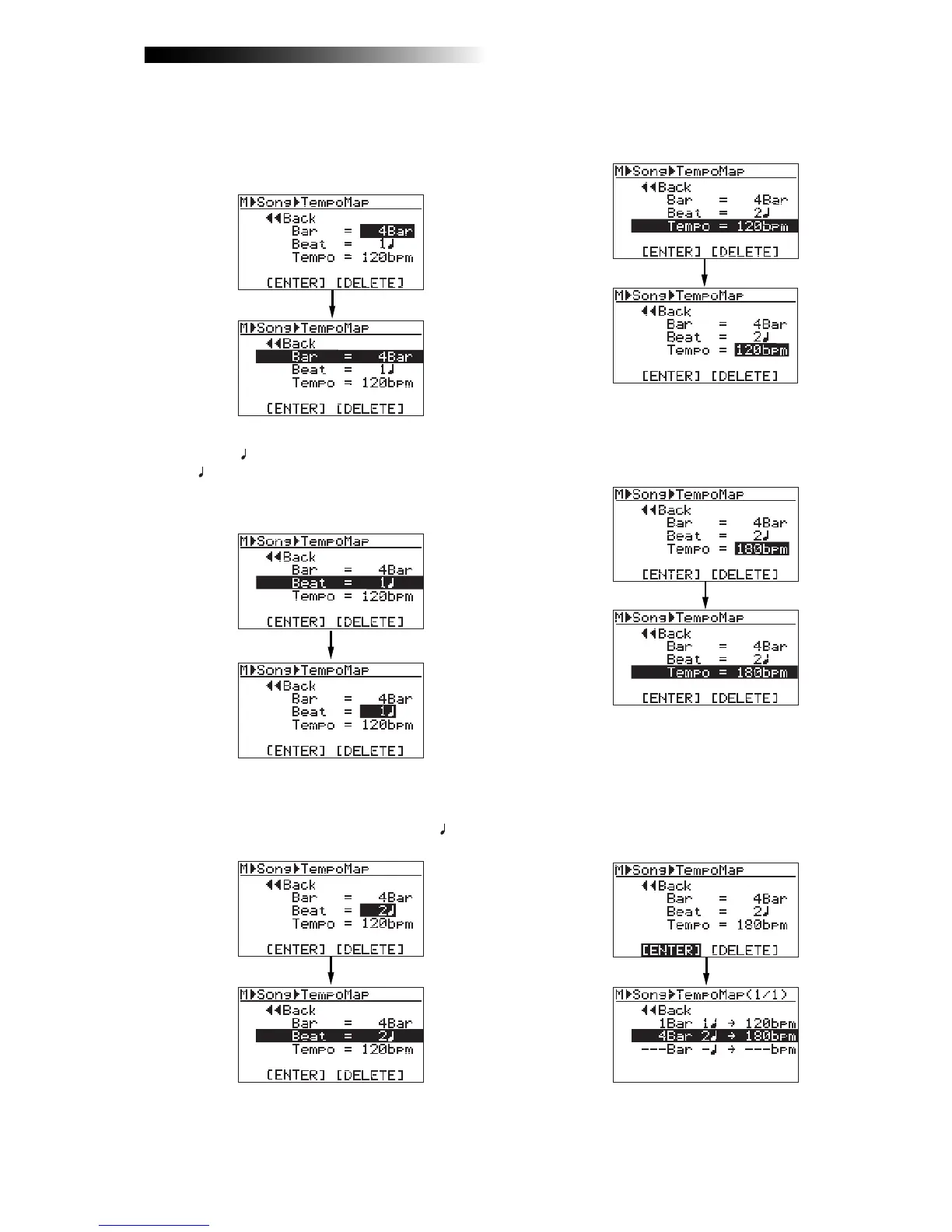 "Tempo = 120bpm", and press the [MENU/ENTER]