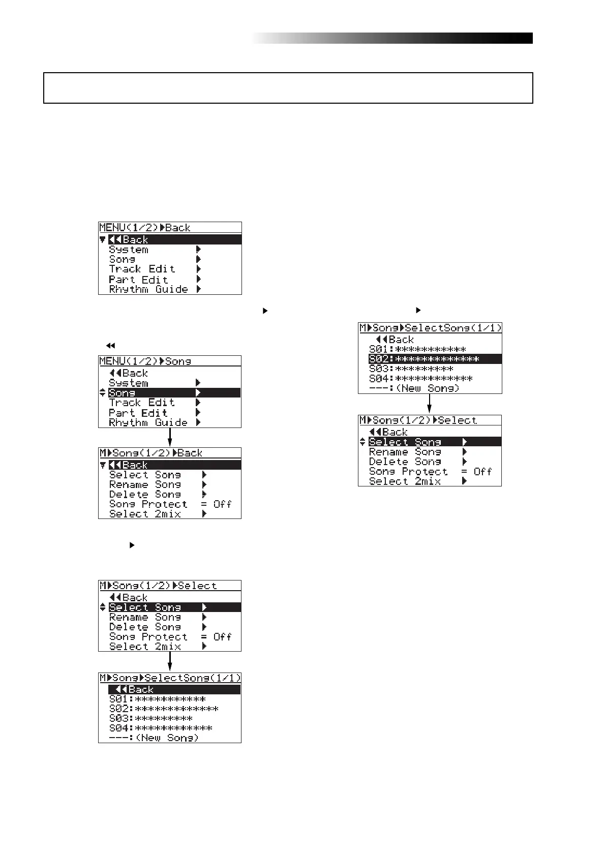 The display now shows the song menu screen,