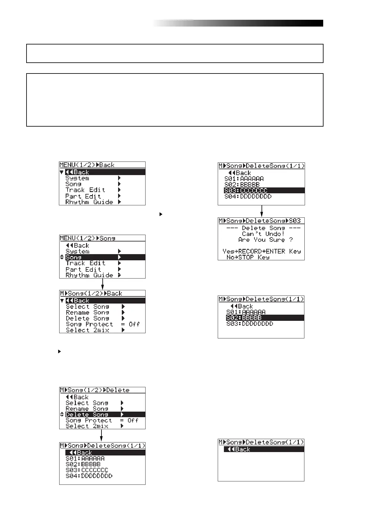 • You cannot delete a song which is protected. To delete such a song, release the protection of the song first
