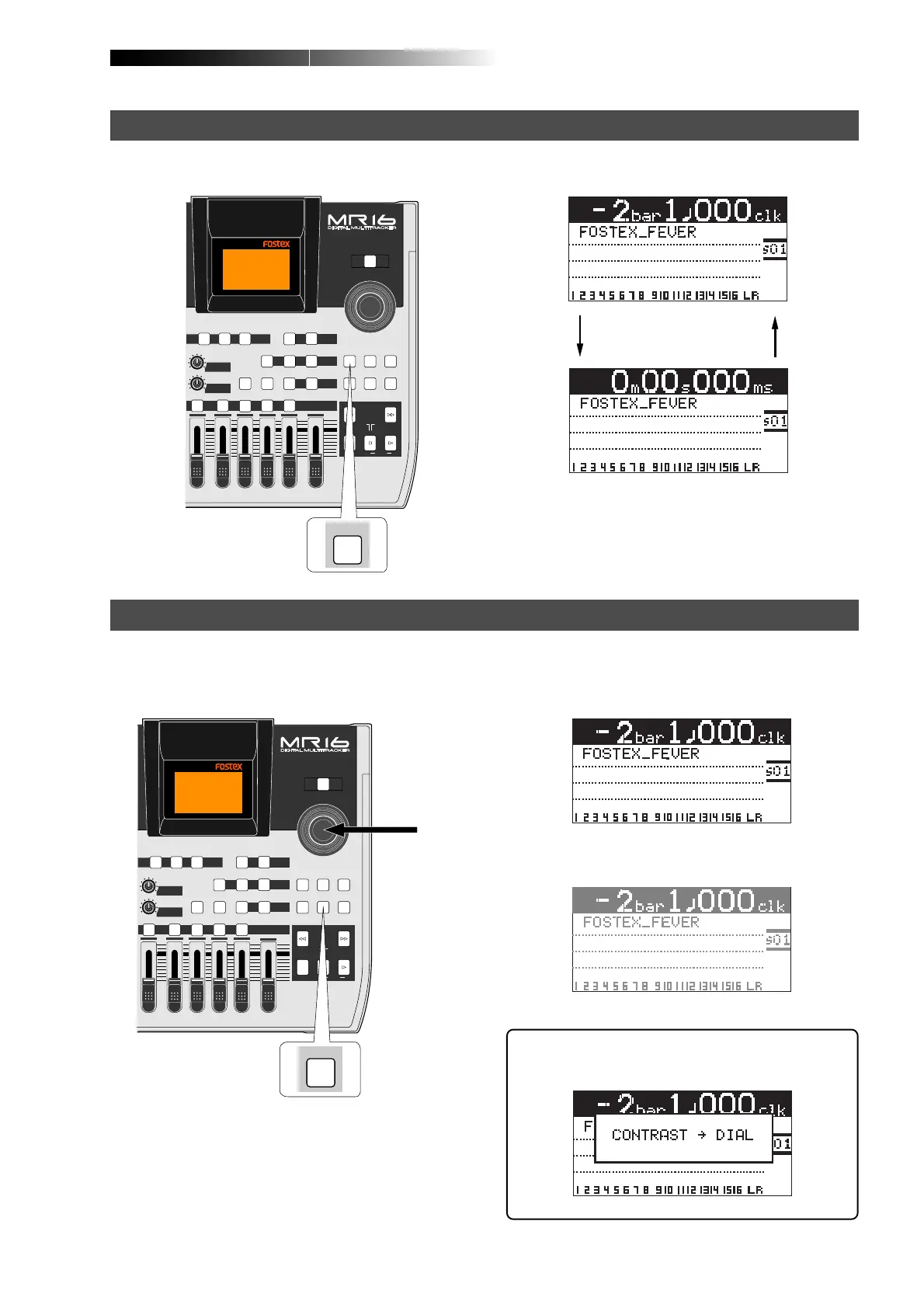 display shows "CONTRAST -> DIAL".
