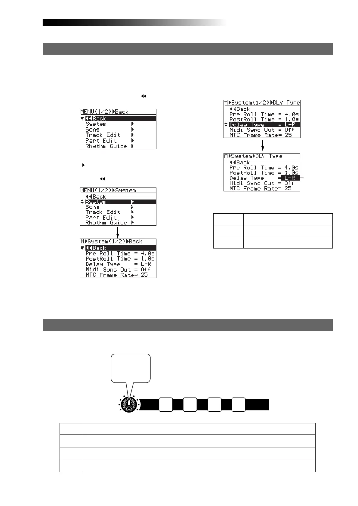 Adjusts the delay time within the range between 100 ms to 1000 ms (center position: 300 ms)