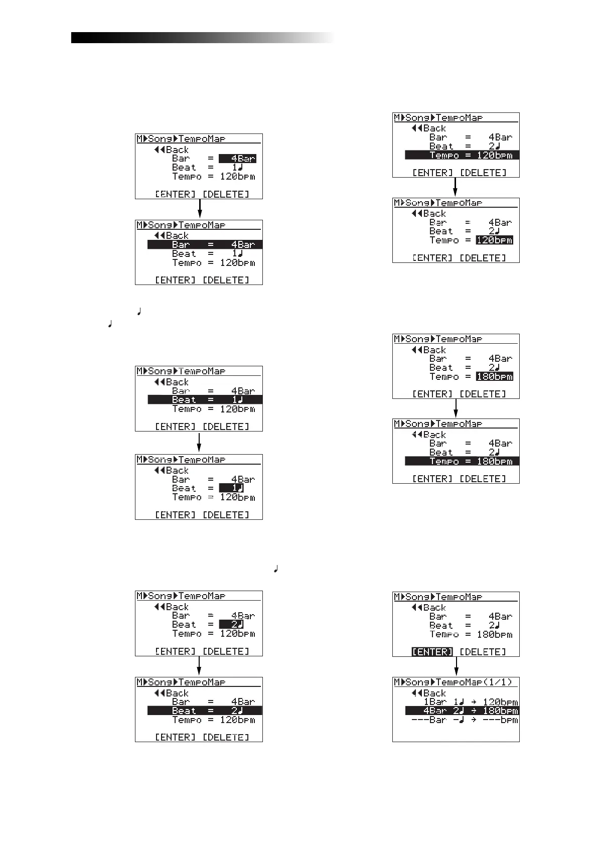 "Tempo = 120bpm", and press the [MENU/ENTER]