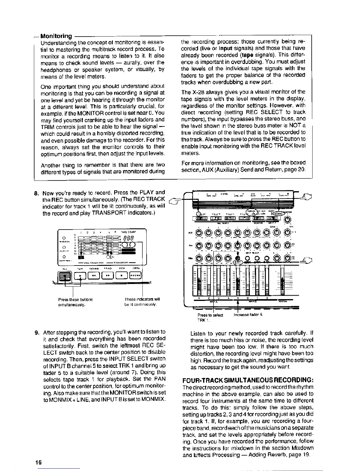 Fostex MULTITRACKER X-28 - Monitoring and Playback; Four-Track Simultaneous Recording