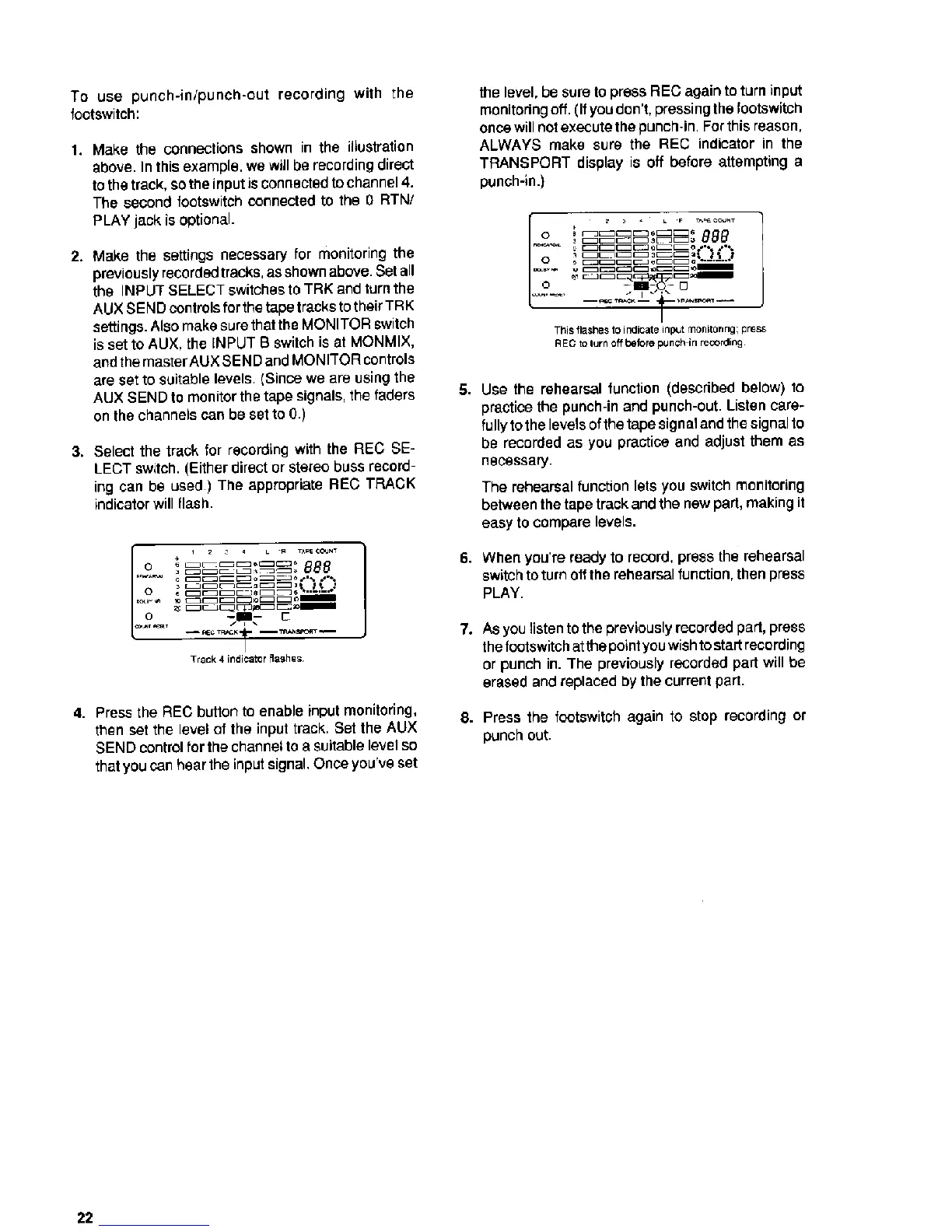 Fostex MULTITRACKER X-28 - Footswitch Operation for Punch-in