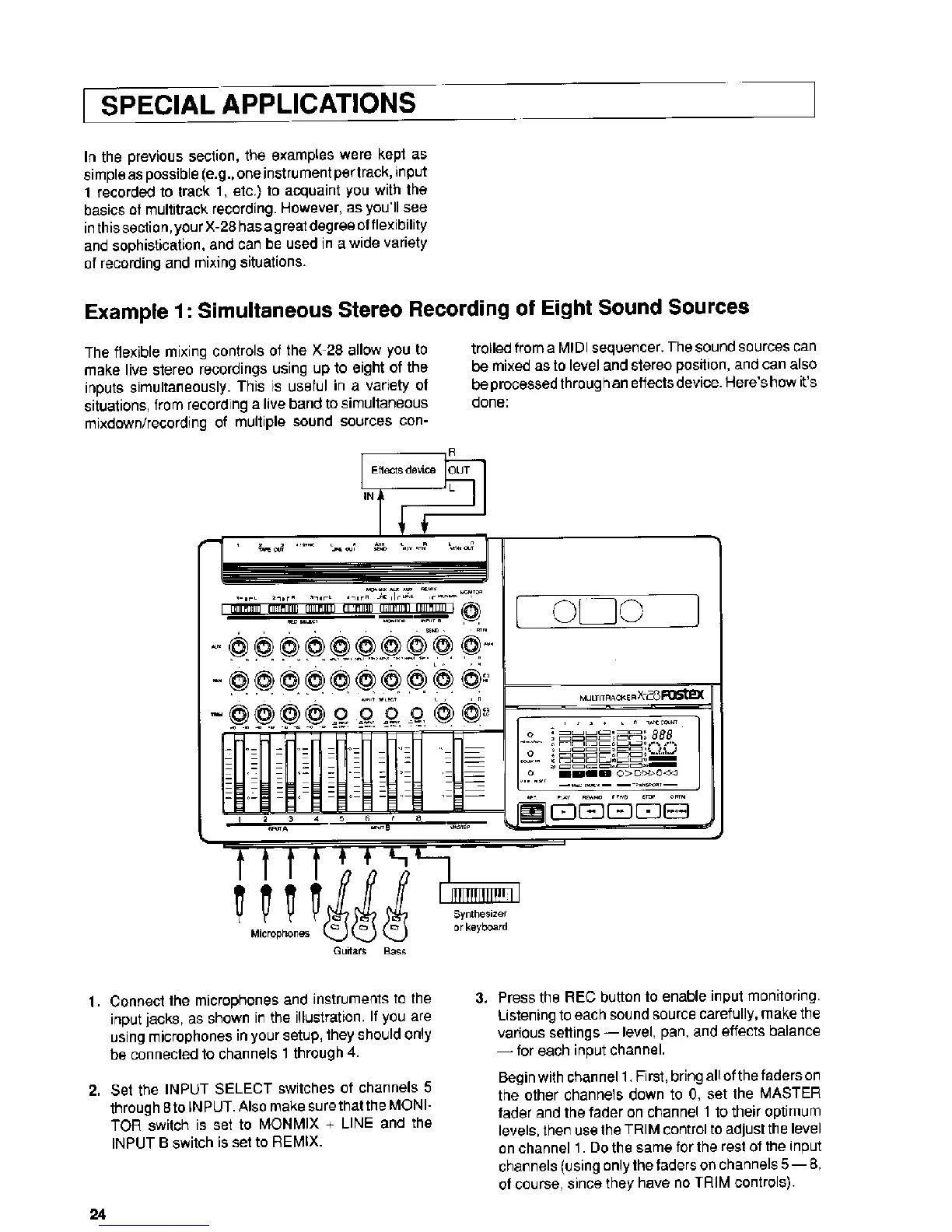 Fostex MULTITRACKER X-28 - SPECIAL APPLICATIONS; Simultaneous Stereo Recording