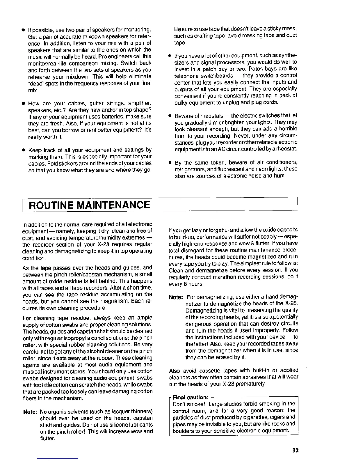 Fostex MULTITRACKER X-28 - ROUTINE MAINTENANCE