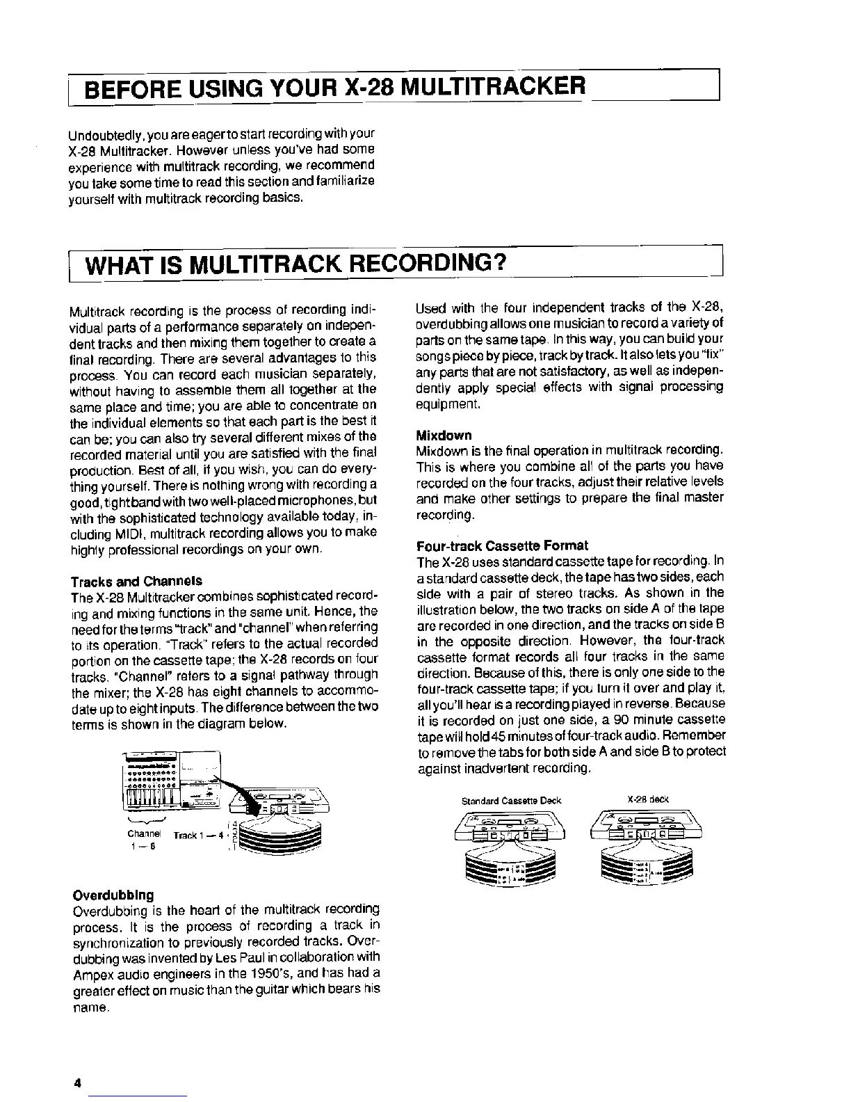 Fostex MULTITRACKER X-28 - BEFORE USING YOUR X-28 MULTITRACKER; What is Multitrack Recording?