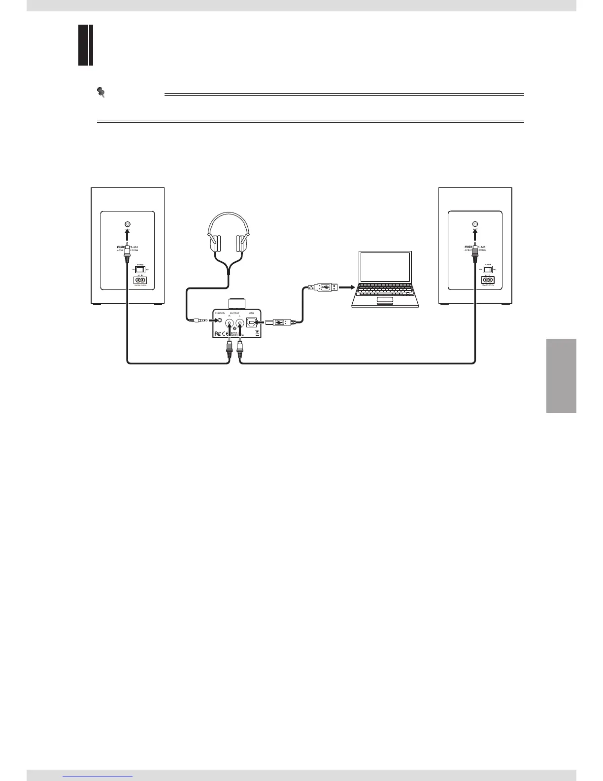 Connectez les prises de sortie [OUTPUT] (L/R) de l'appareil a une enceinte de contrôle active.