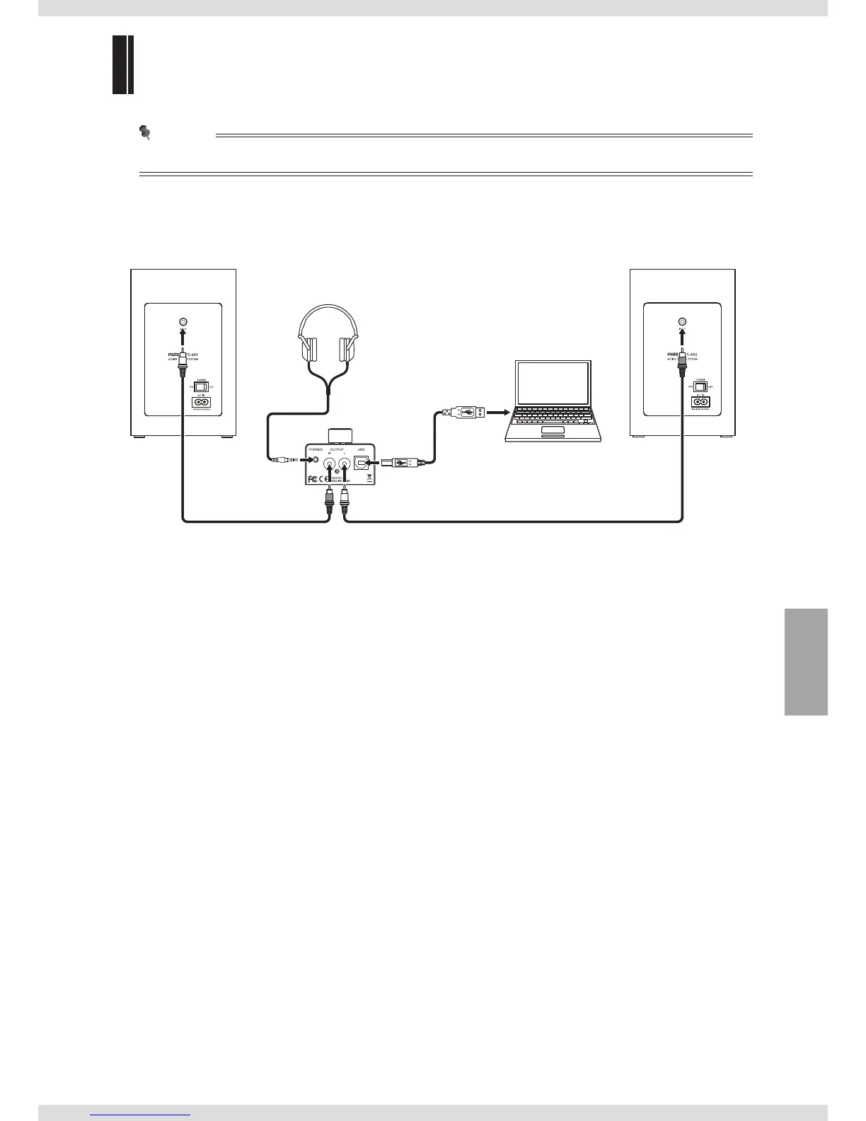 2 Anschließen dieses Geräts an Kopfhörer oder eine Aktivbox.