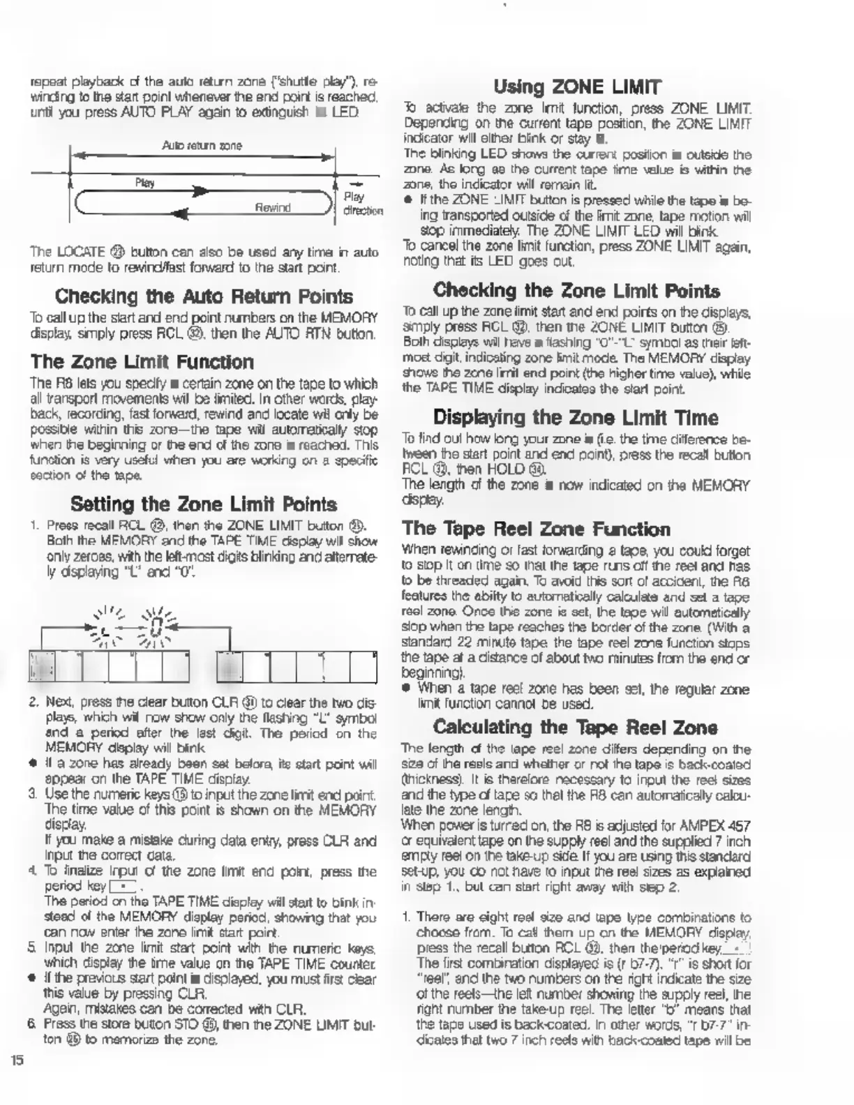 Fostex R8 - Auto Functions and Zone Limits; Auto Play and Auto Return Functions; Setting Auto Return Points