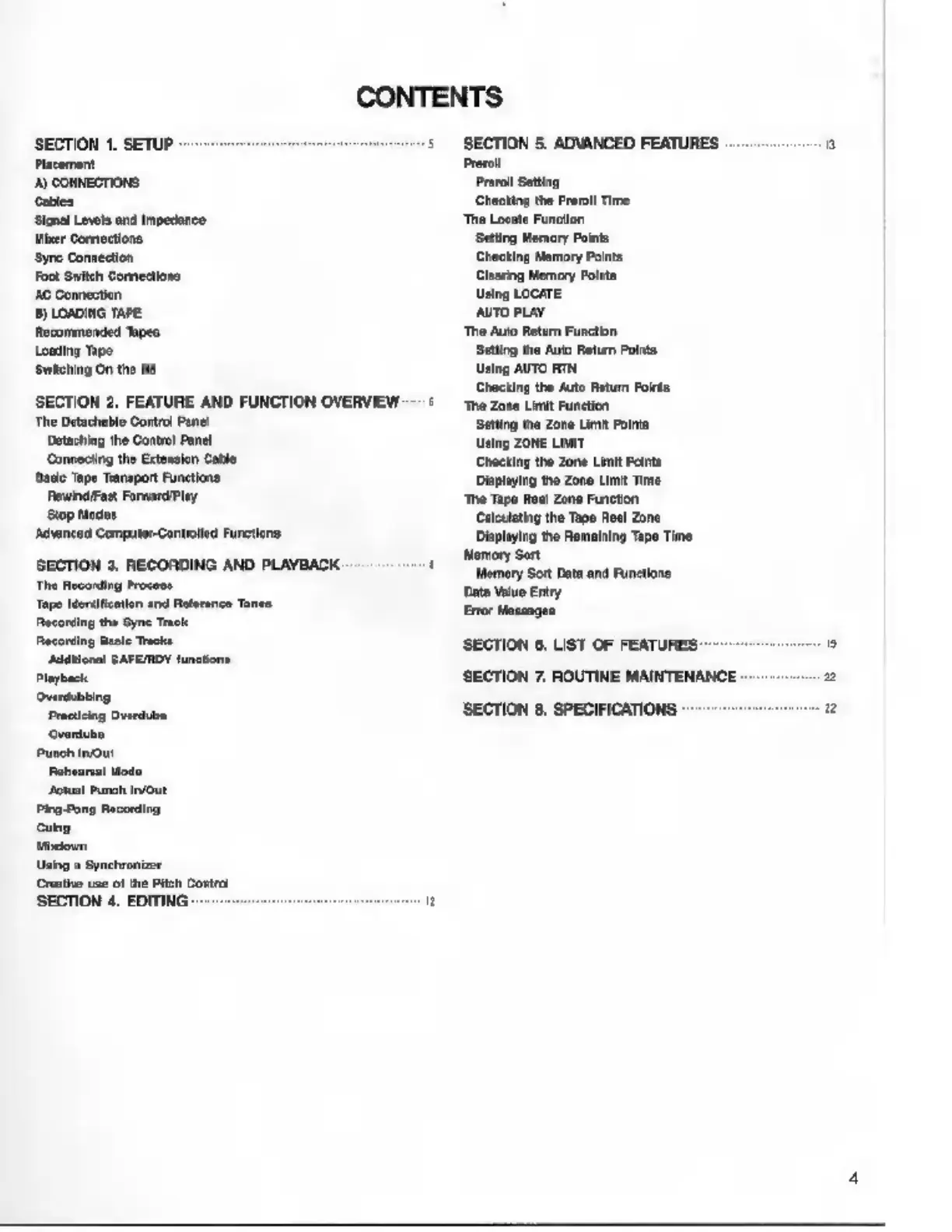 Fostex R8 - Table of Contents