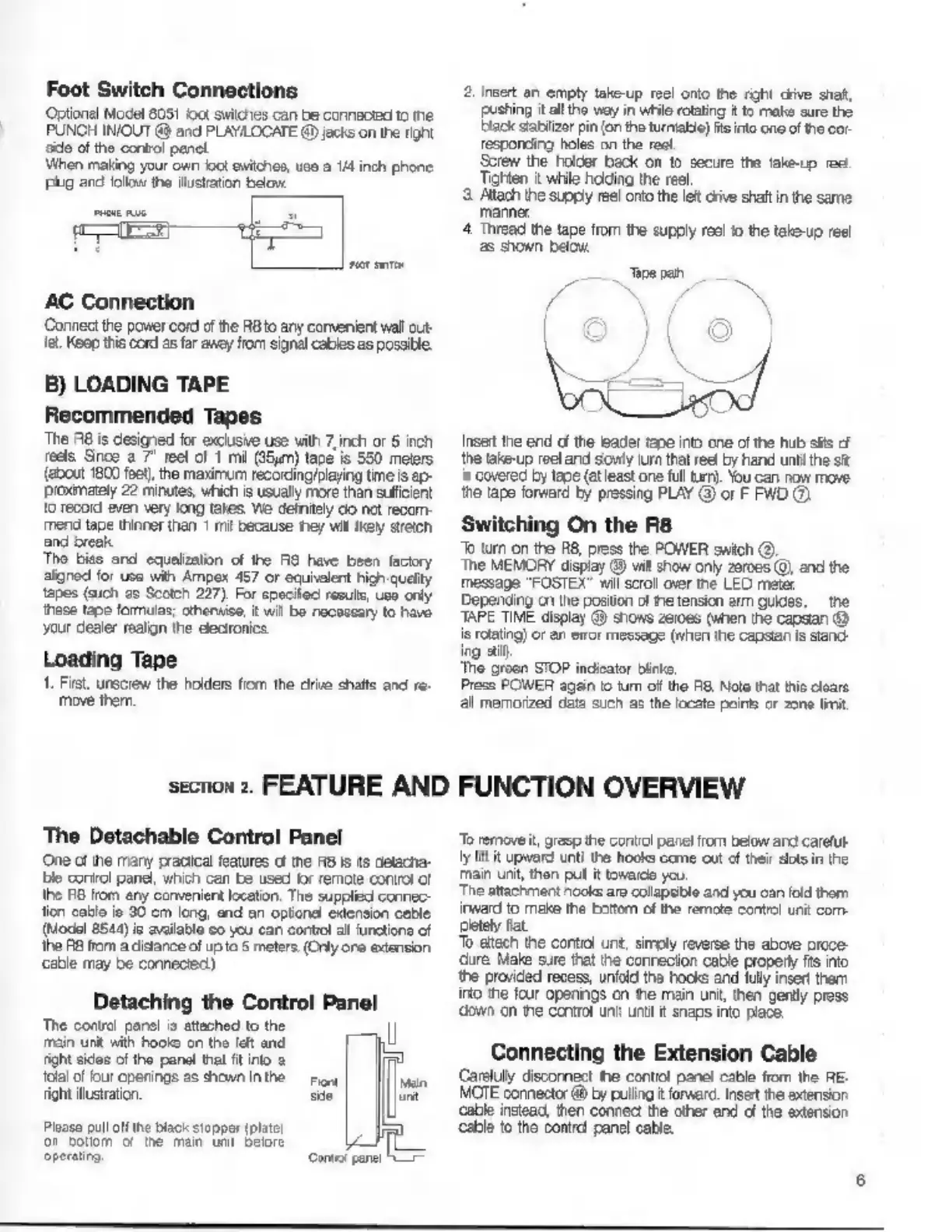 Fostex R8 - Setup Procedures; Power, Foot Switches, and Tape Loading