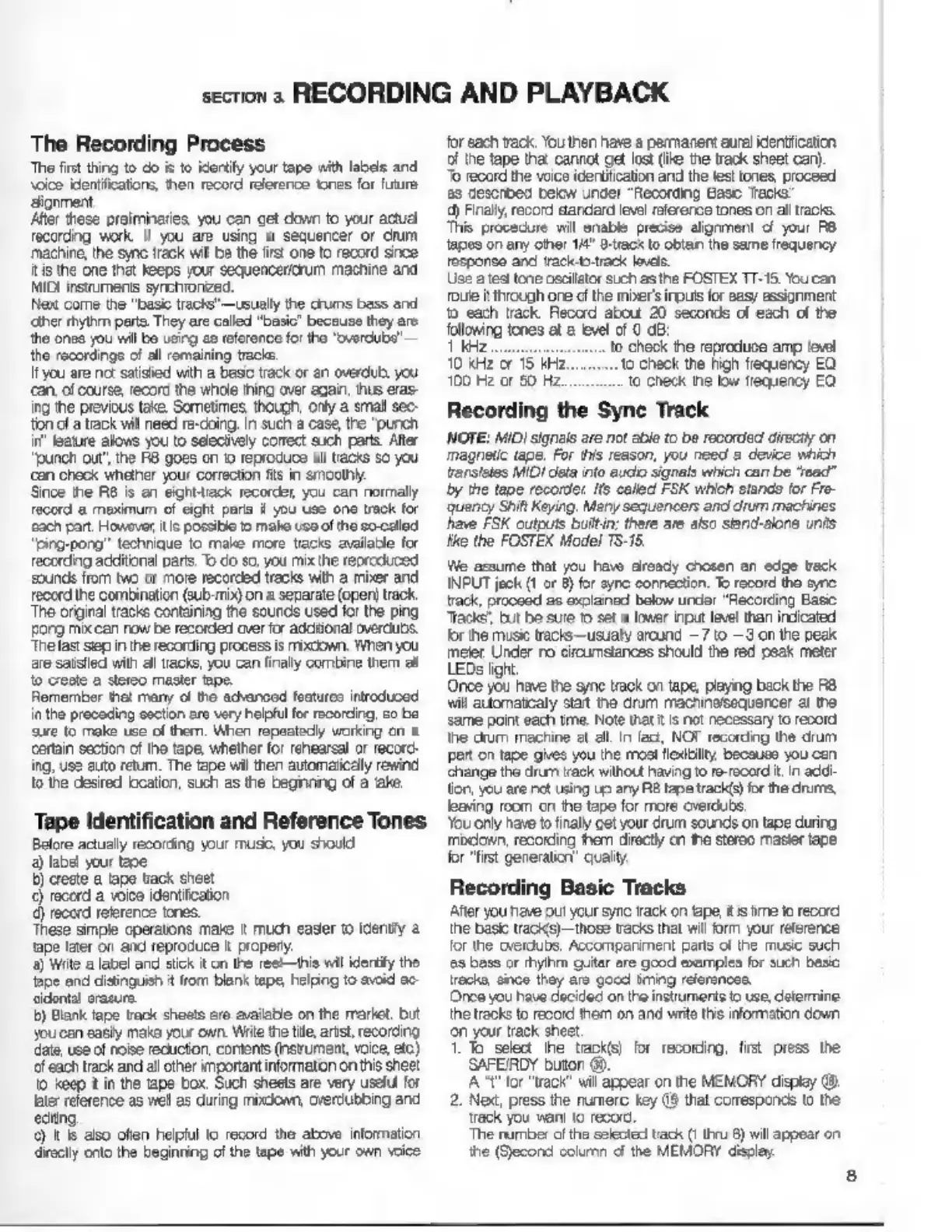 Fostex R8 - Recording and Playback Procedures; Recording Workflow and Tape Identification; Recording Basic Tracks